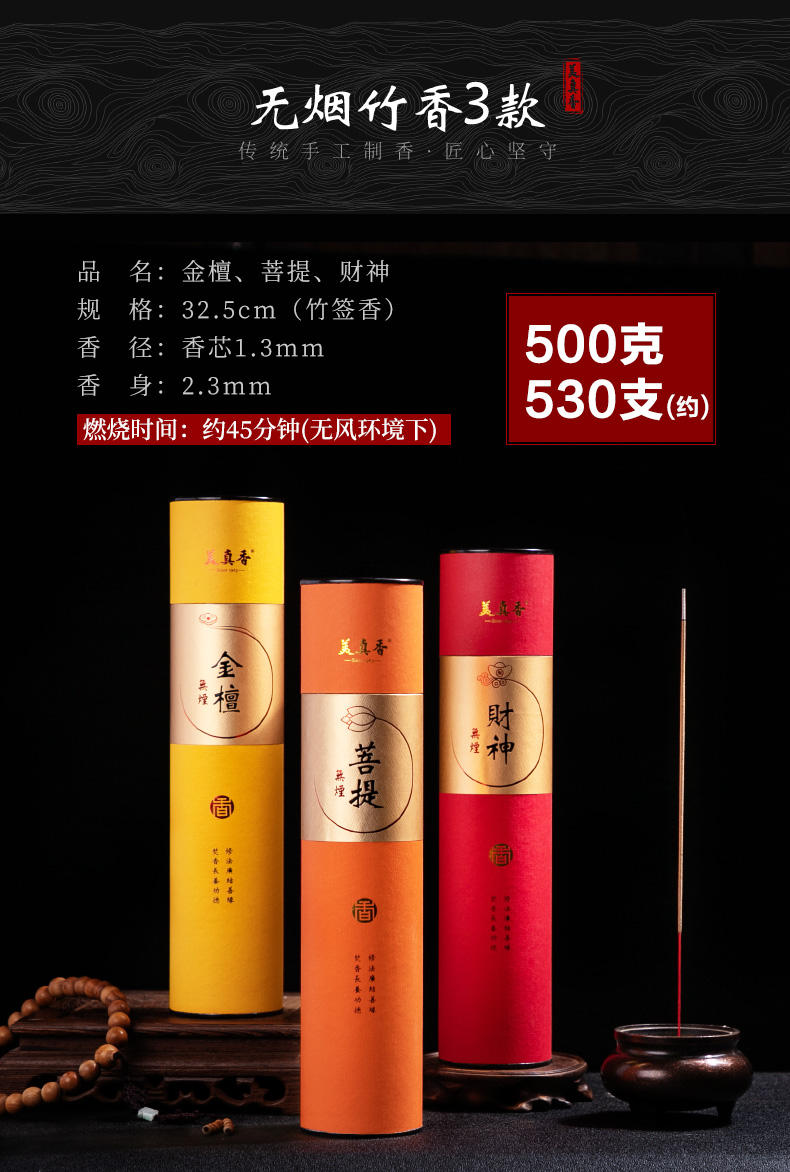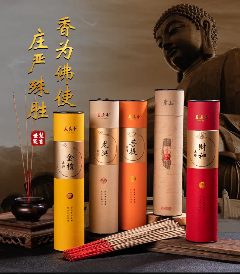 美真香 礼佛香供香家用无烟香 天然纯沉香线香竹签檀香供佛财神香