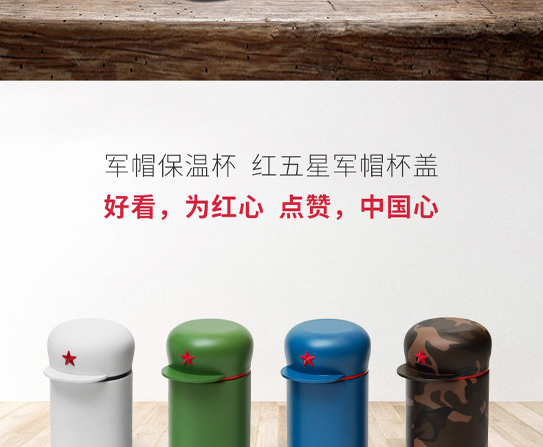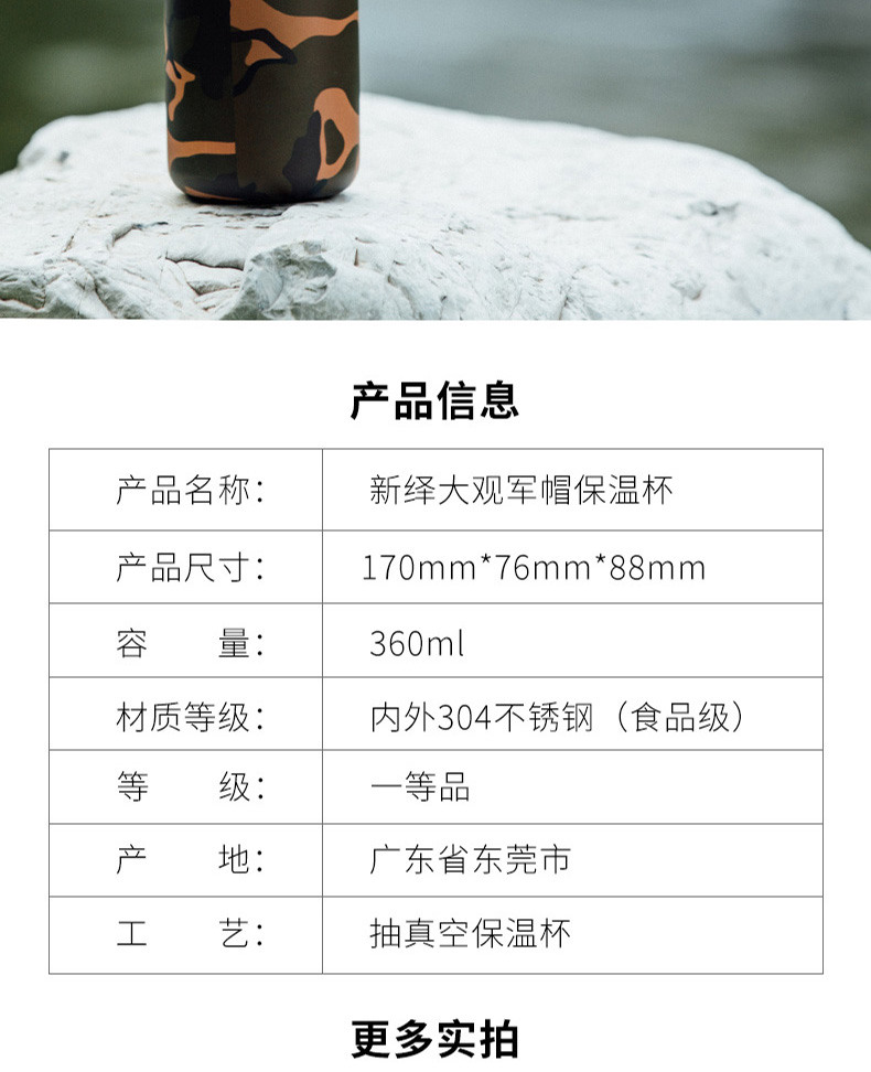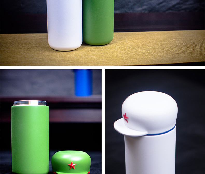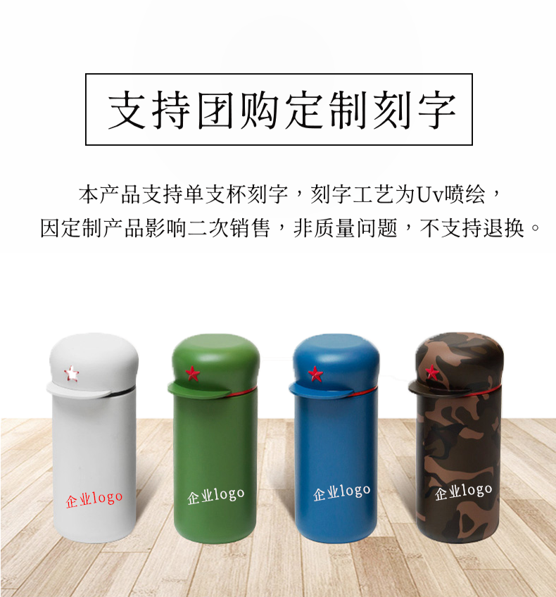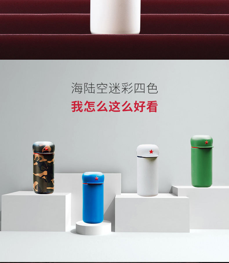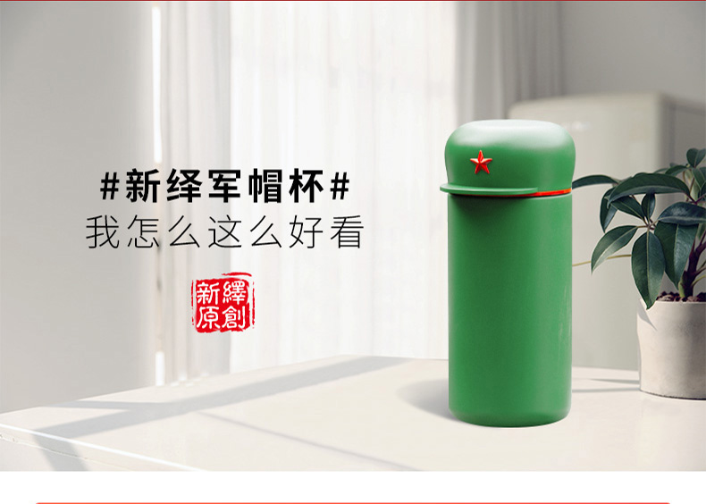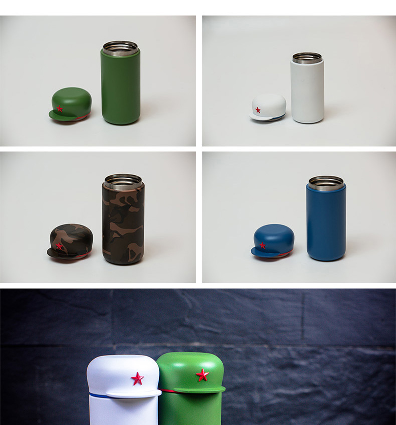 新绎军帽杯 创意保温杯 儿童学生外带便携保温杯子不锈钢茶杯水杯