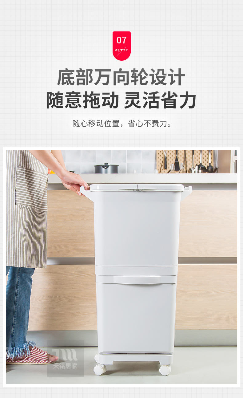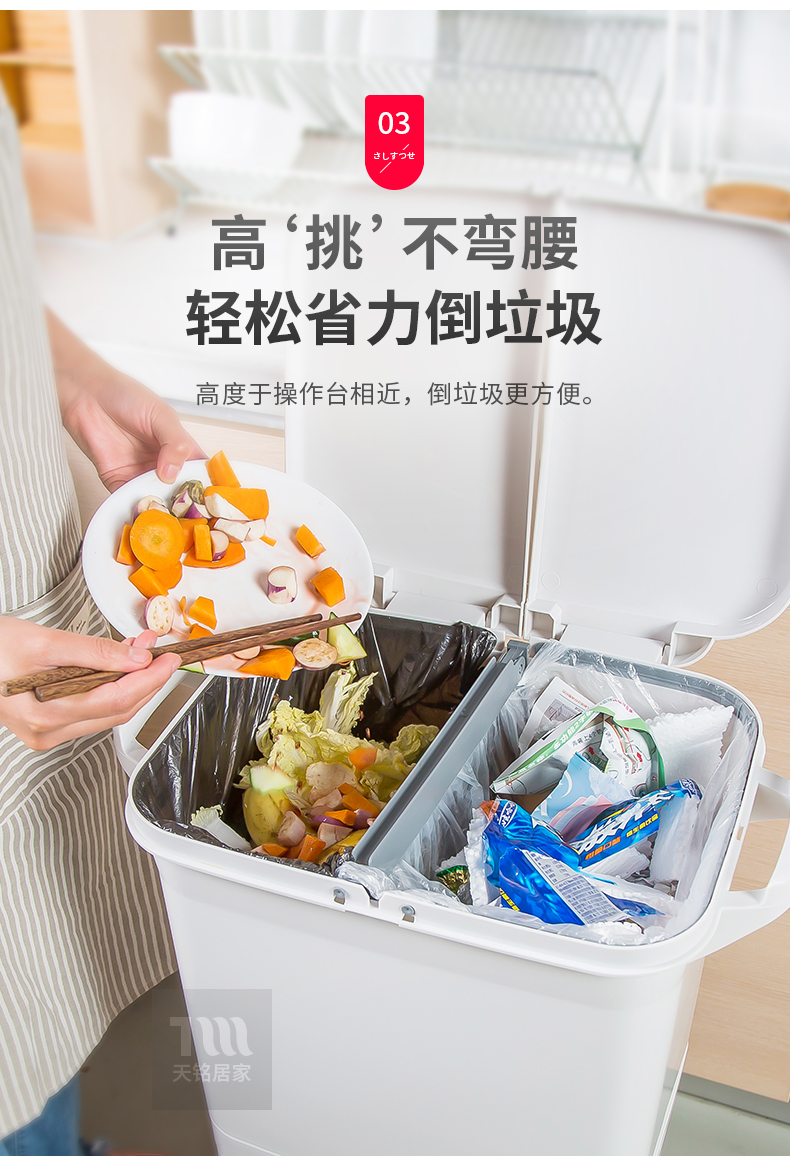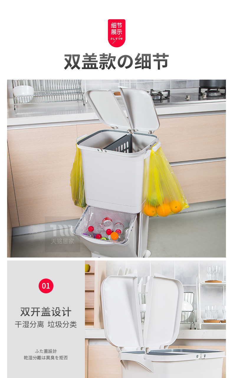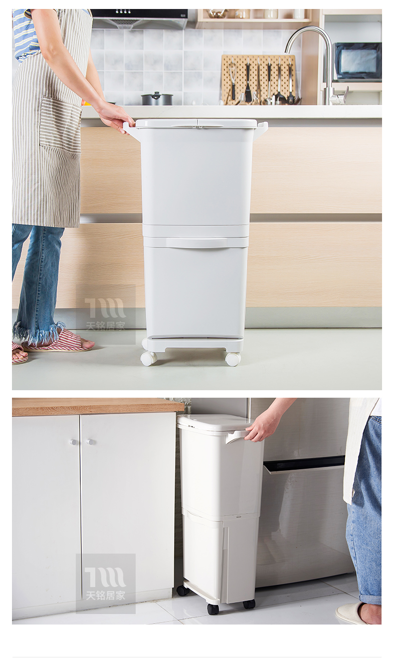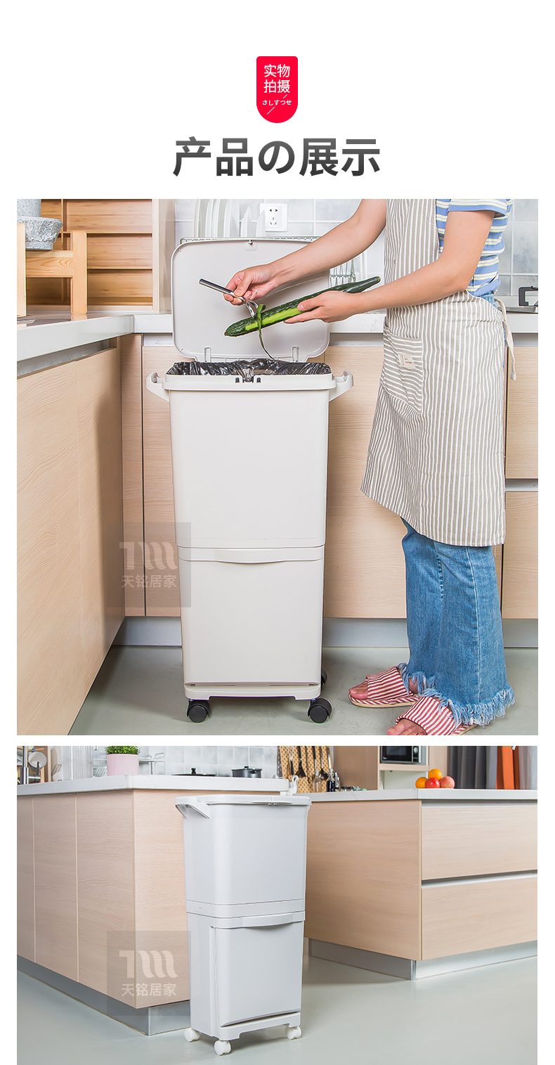 日本分类垃圾桶家用厨房双层干湿分离款带盖上海家庭日式两用分层