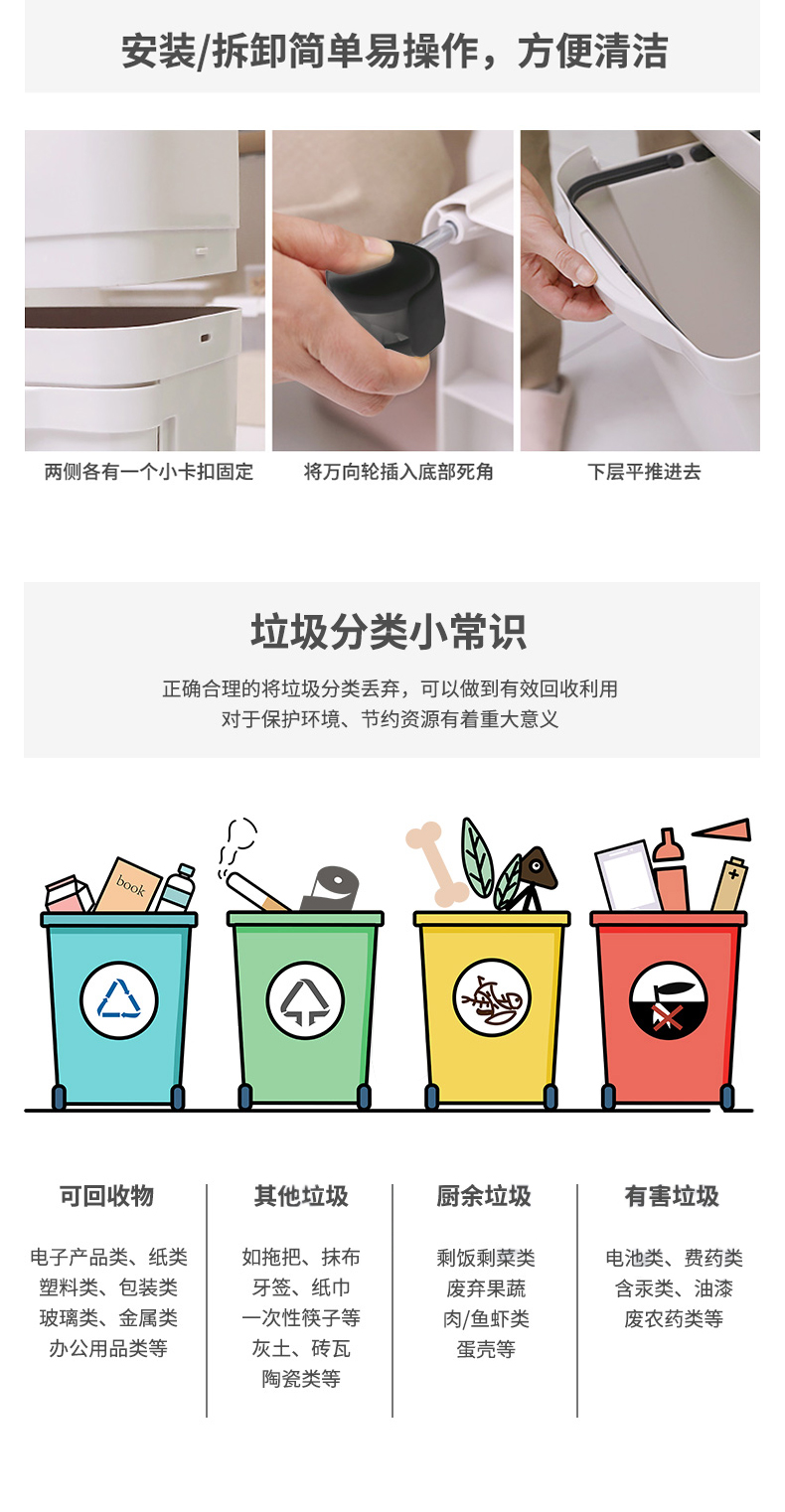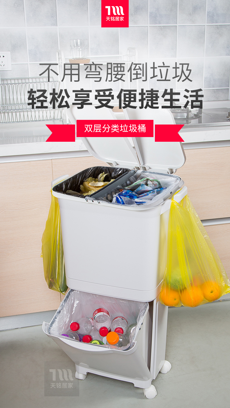 【kinbata】选用优质材料,做工精细高端精致,家用、办公室、客厅、卧室,双层大容量,环保静音,按压式开盖,锁住异味,操作更便捷!彻底实现干湿、再回收分类,让您不再为垃圾分类烦恼.
