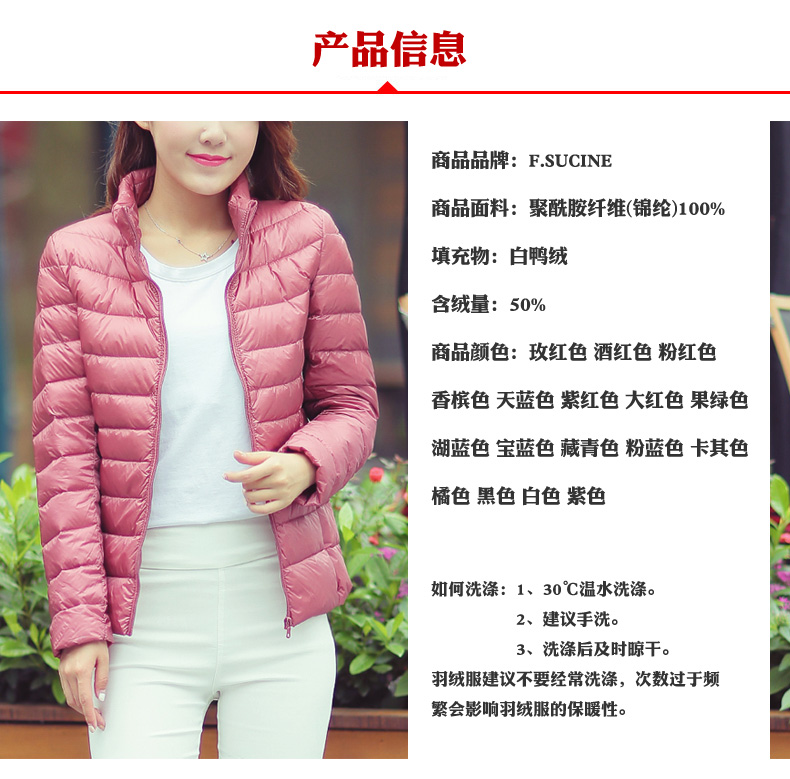 过季清仓春秋冬轻薄羽绒服女短款立领修身轻便大码中老年妈妈外套