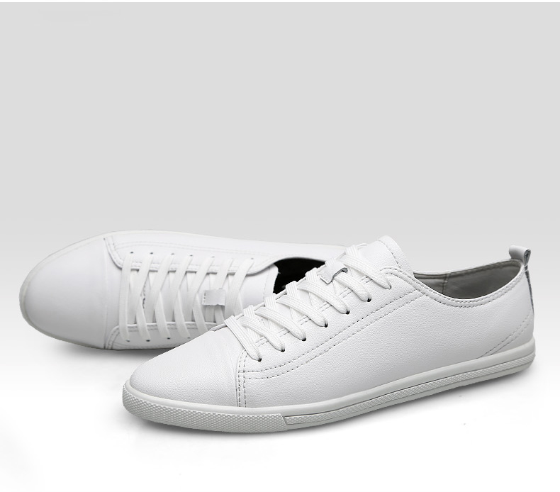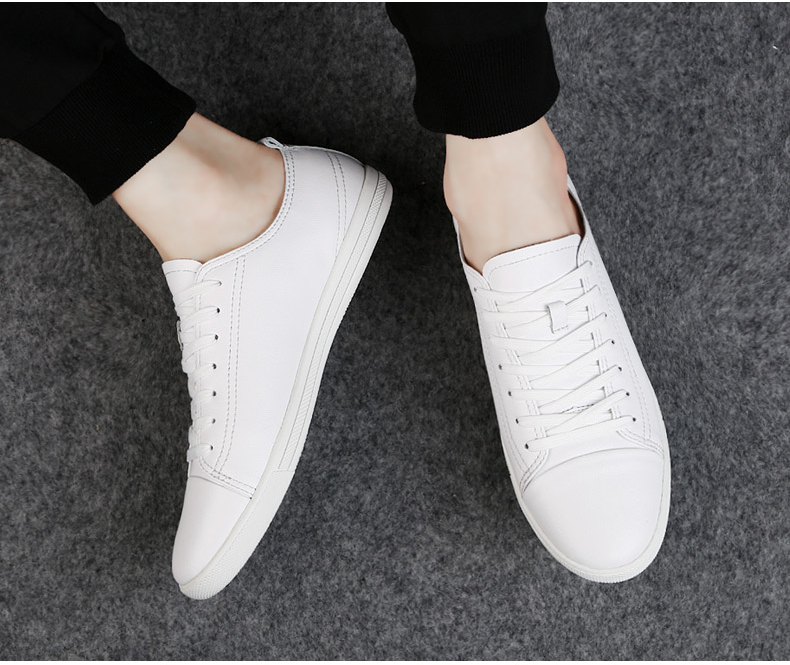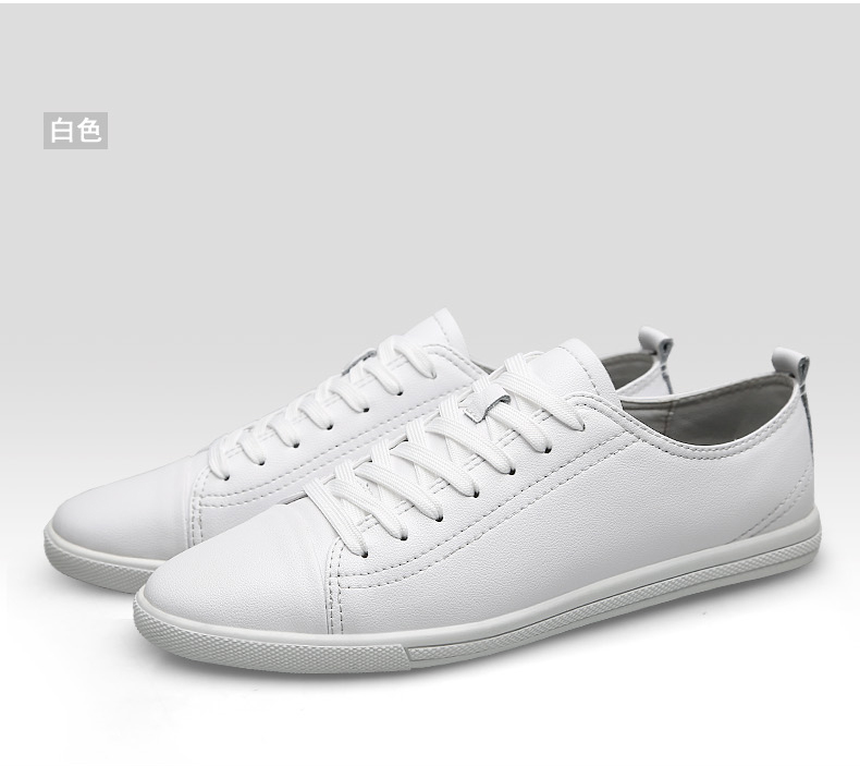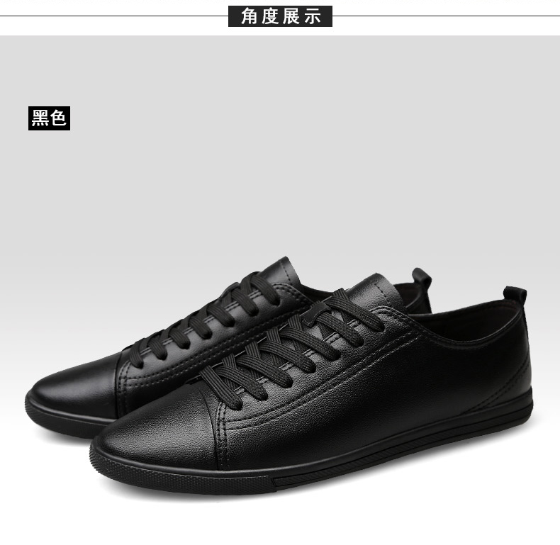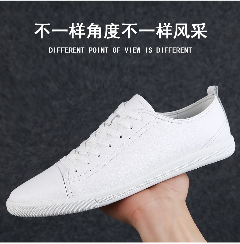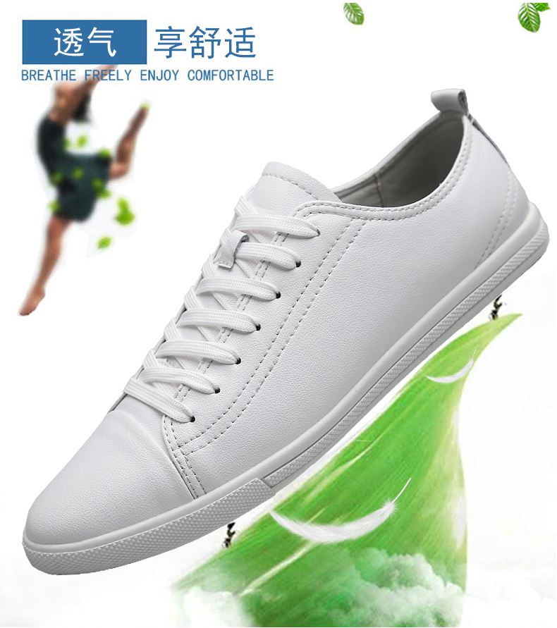 2019春季个性真皮板鞋男青年韩版小白鞋男软面皮平底白色透气皮鞋