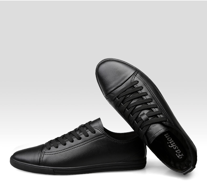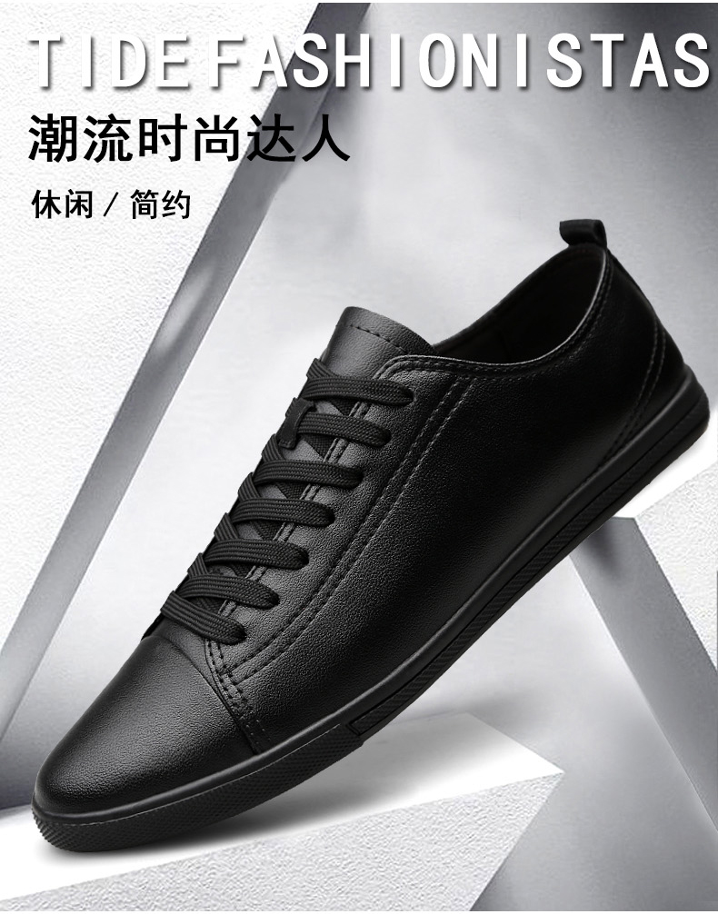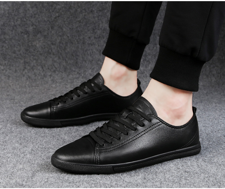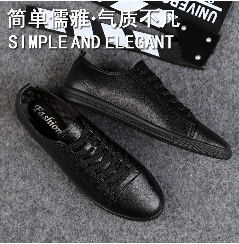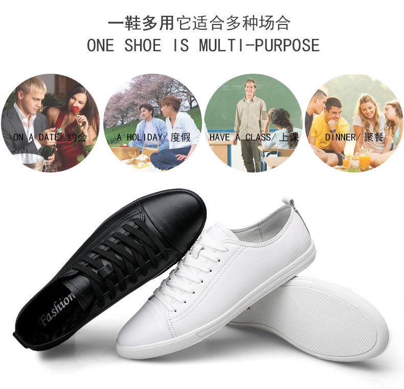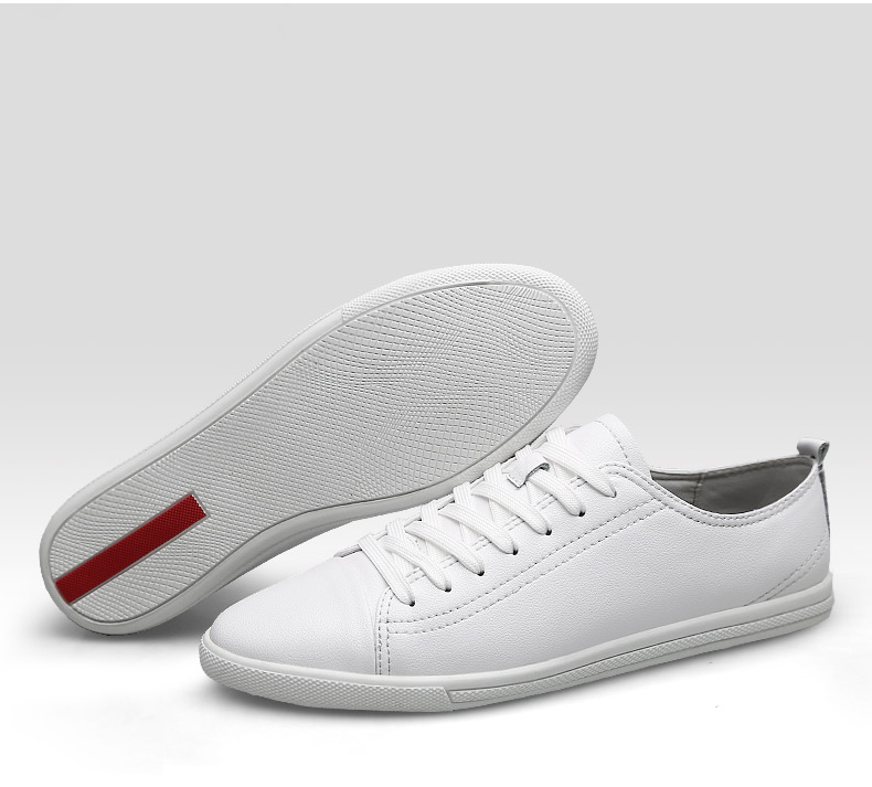 2019春季个性真皮板鞋男青年韩版小白鞋男软面皮平底白色透气皮鞋