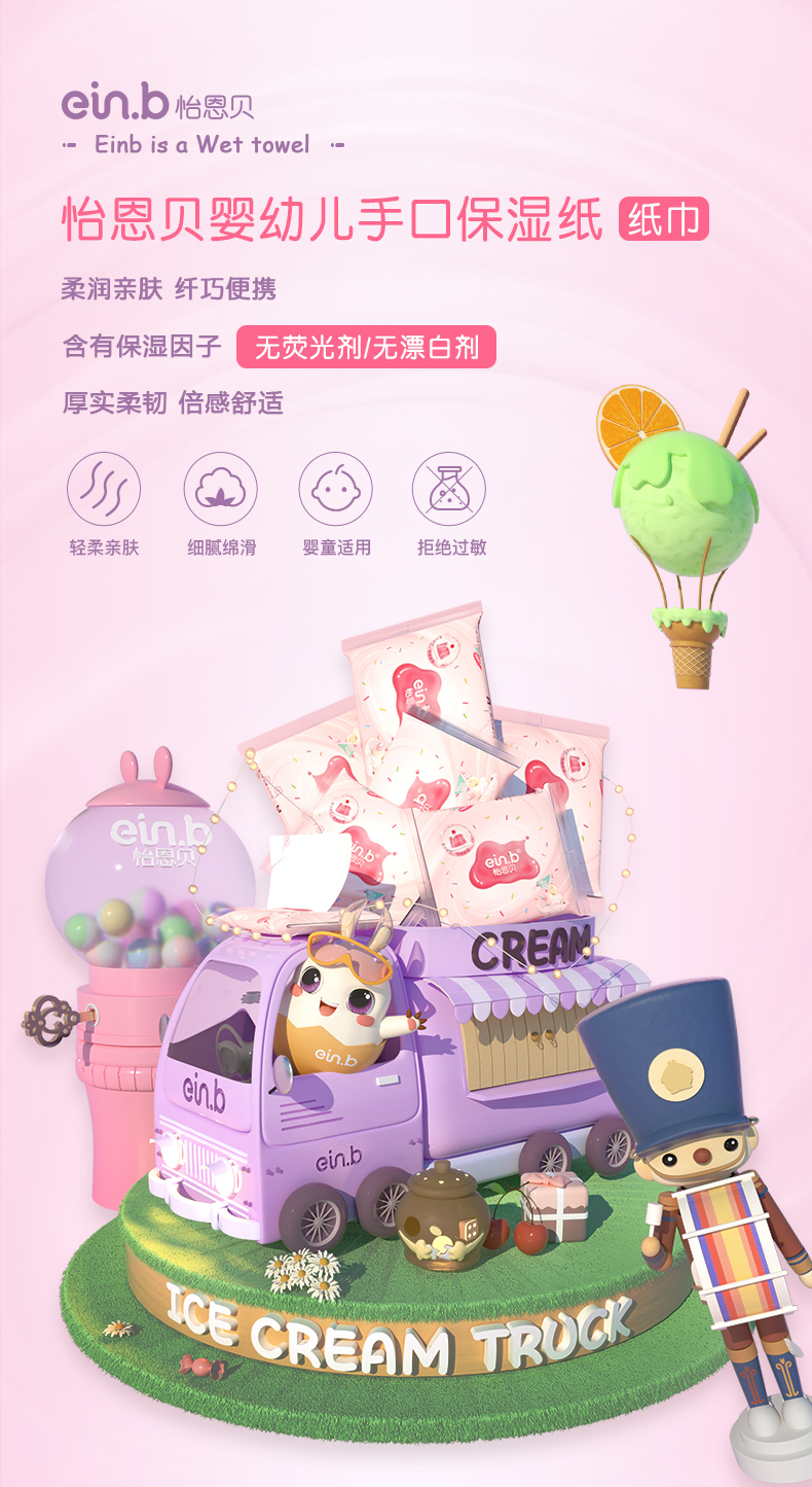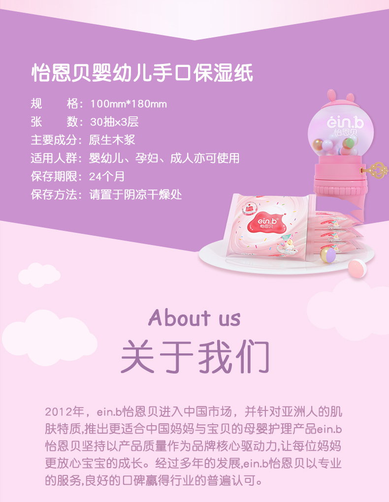怡恩贝婴儿乳霜纸巾宝宝手口专用云柔巾30抽10包家用便携装抽纸