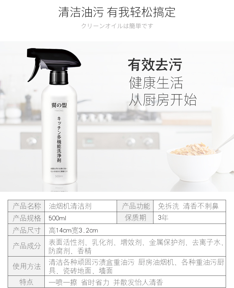 厨房去油神器强力油污清洁剂家用房油烟机泡沫去污清洁剂去重油污