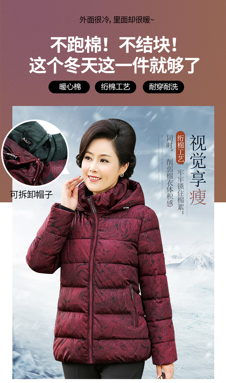 朱迅推荐,福玛玛大牌棉服,加厚饱满妈妈装,可拆卸帽子,绗棉工艺,三层暖心棉,下摆收紧挡风设计,买来送妈妈,做妈妈贴心小棉袄!