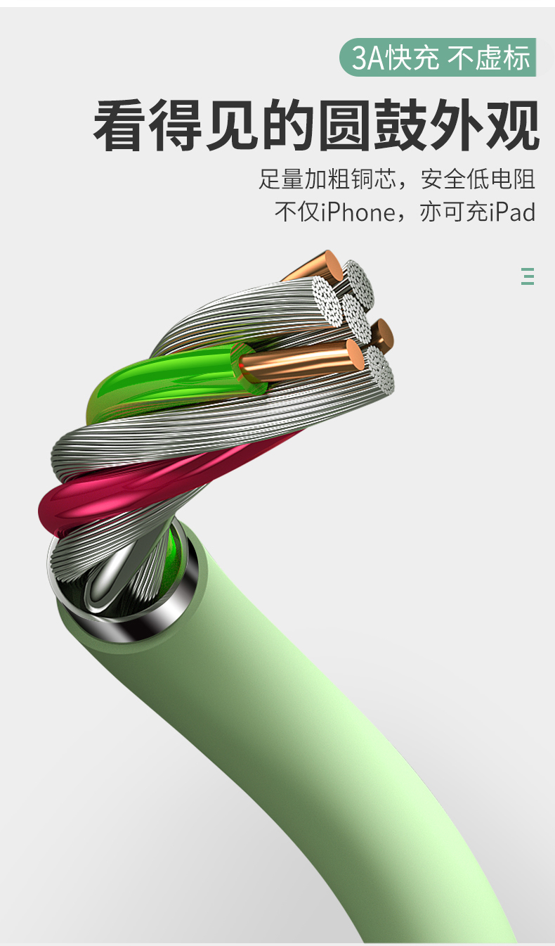 精选优质进口材质,坚韧耐用,纯铜线芯【充电提速60%】,效率大幅提升,让等待不再漫长,充电更省时!数据线有多少都不嫌多,手慢无!