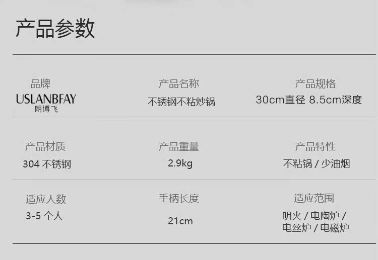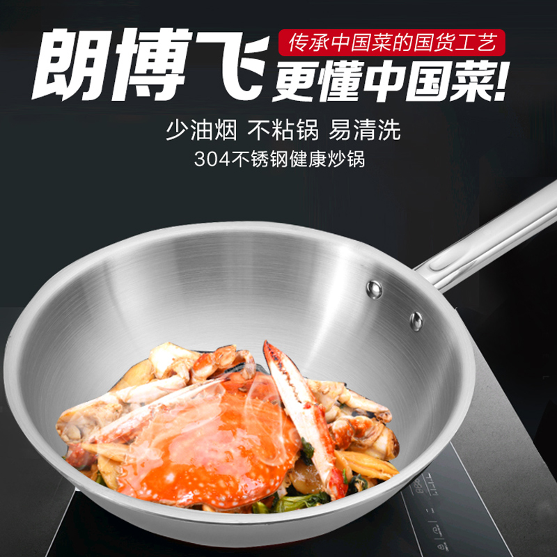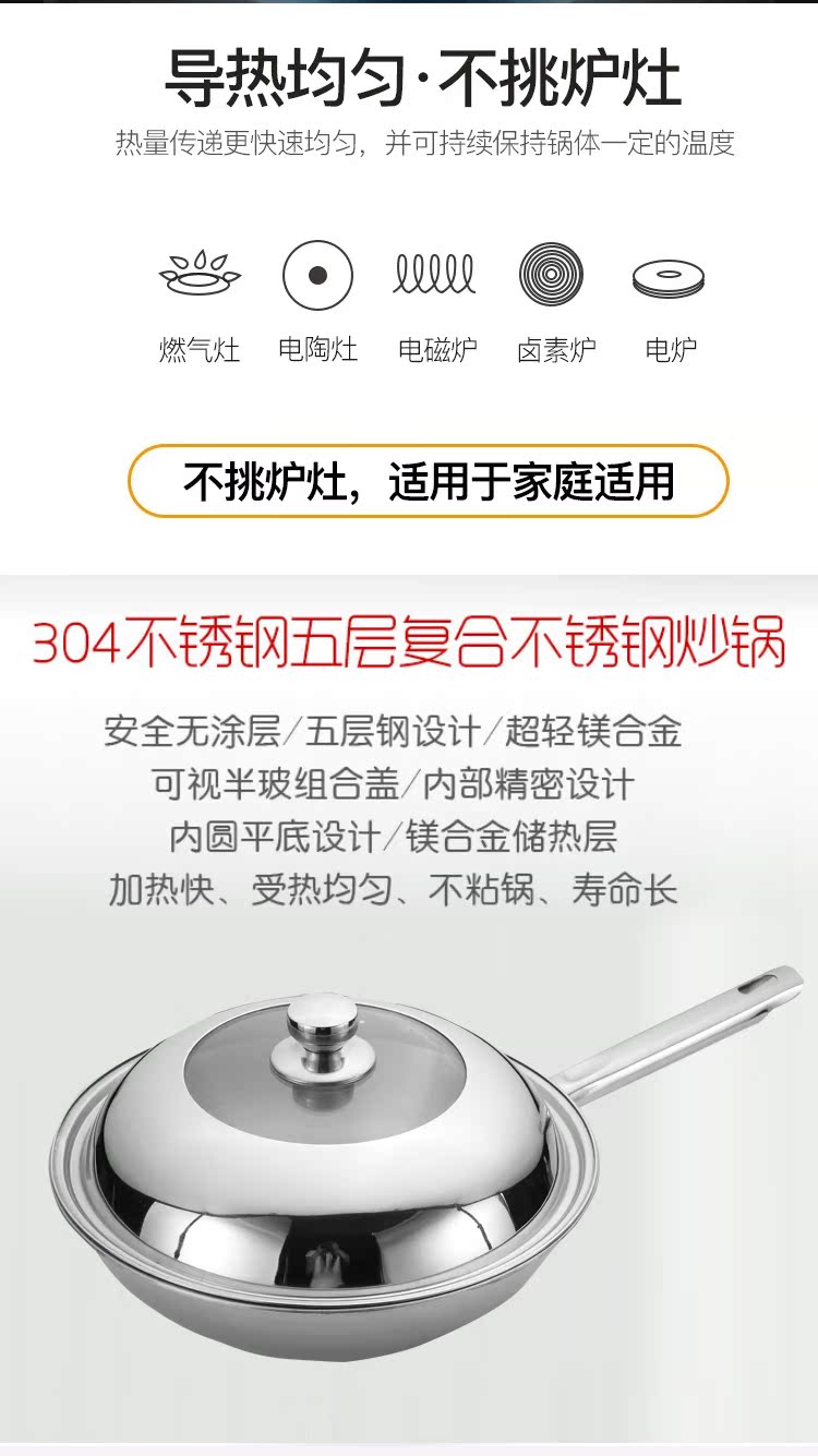 朗博飞304五层不锈钢炒锅 健康无涂层加厚锅具30cm
