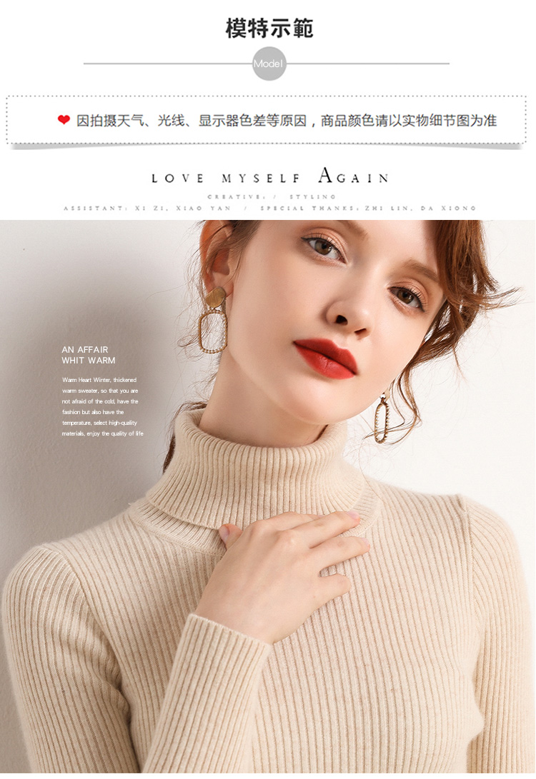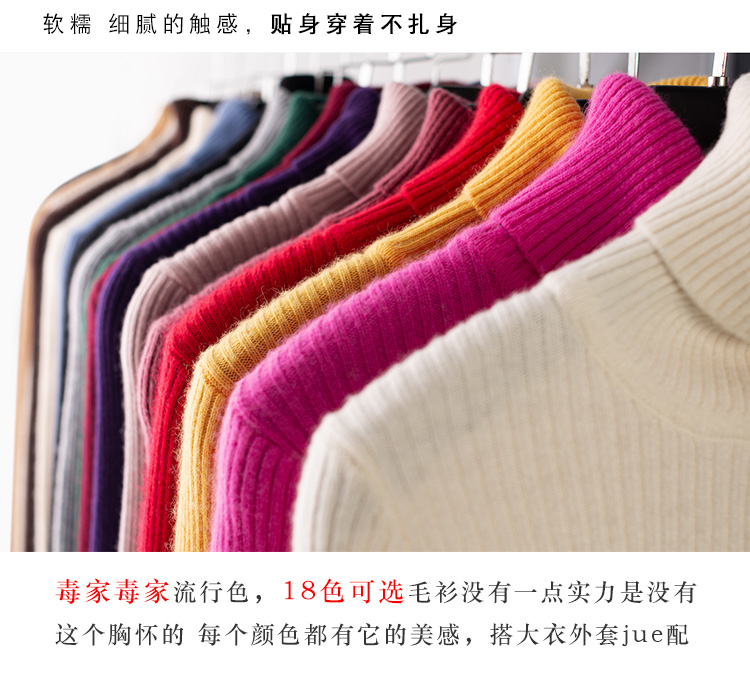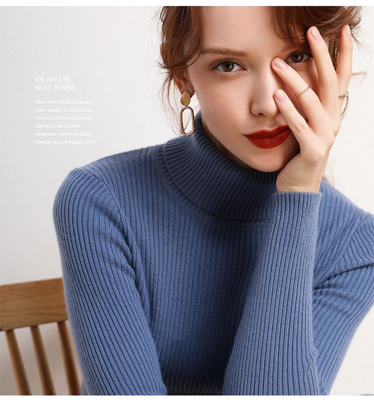 澳苑高领毛衣女加厚修身2019秋冬新款软奶蓝毛衣套头针织打底衫女