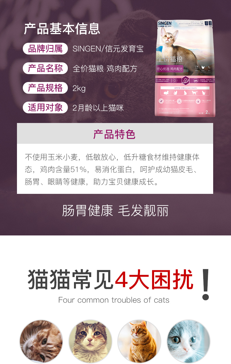 发育宝信元全价全期猫粮全阶段成猫幼猫粮奶糕英美短增肥发腮4斤