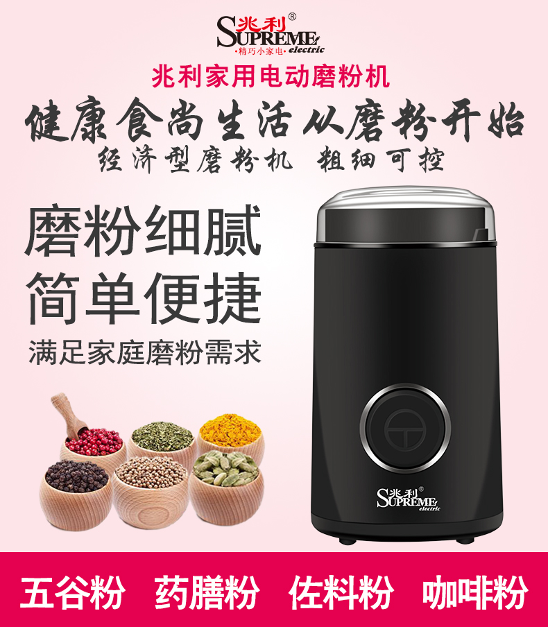 兆利磨粉机电动打粉机家用小型干磨五谷杂粮研磨芝麻中药材粉碎机