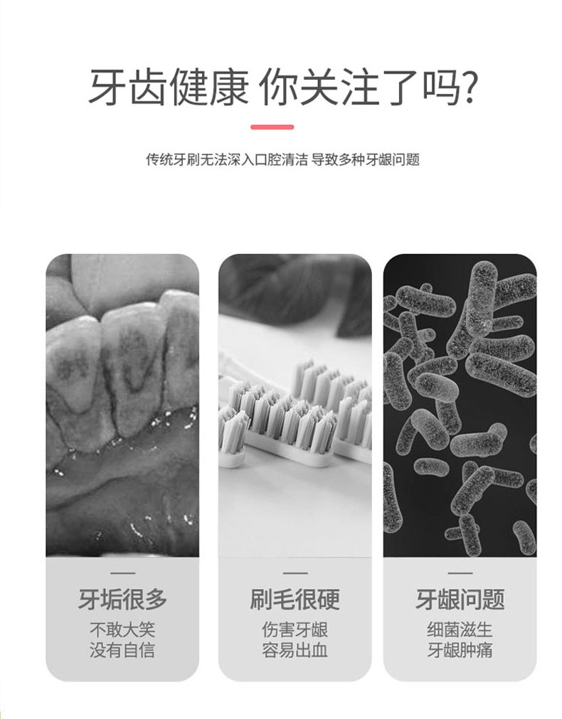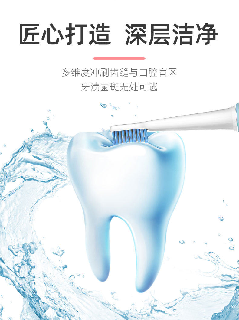 专业口腔护理品牌!美国杜邦刷毛,全身水洗,IPX7级防水/智能提醒,高频震动,低耗能免充电,360度清洁口腔,防蛀防口臭,情侣必买,七天无理由退换!