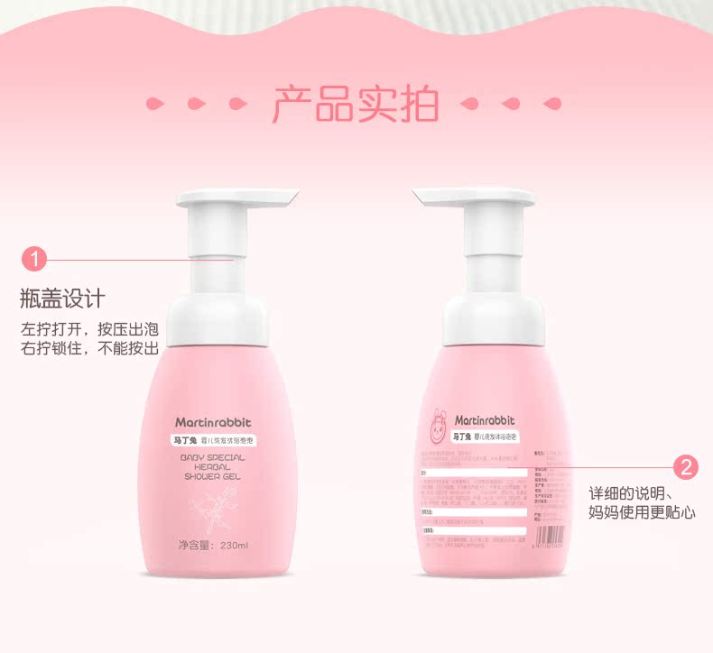 马丁兔婴儿洗发水沐浴露二合一230ml岁新生儿童沐浴液泡泡正品