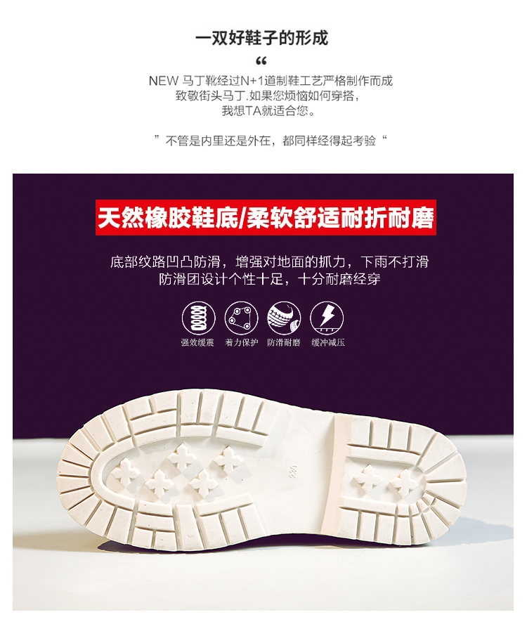 本年度新款马丁靴!ins火到爆炸!筒面材质采用超细纤维,好看耐磨!仙女们人手一双的马丁靴,穿上秒变大长腿!快来抢购吧!【赠运费险】