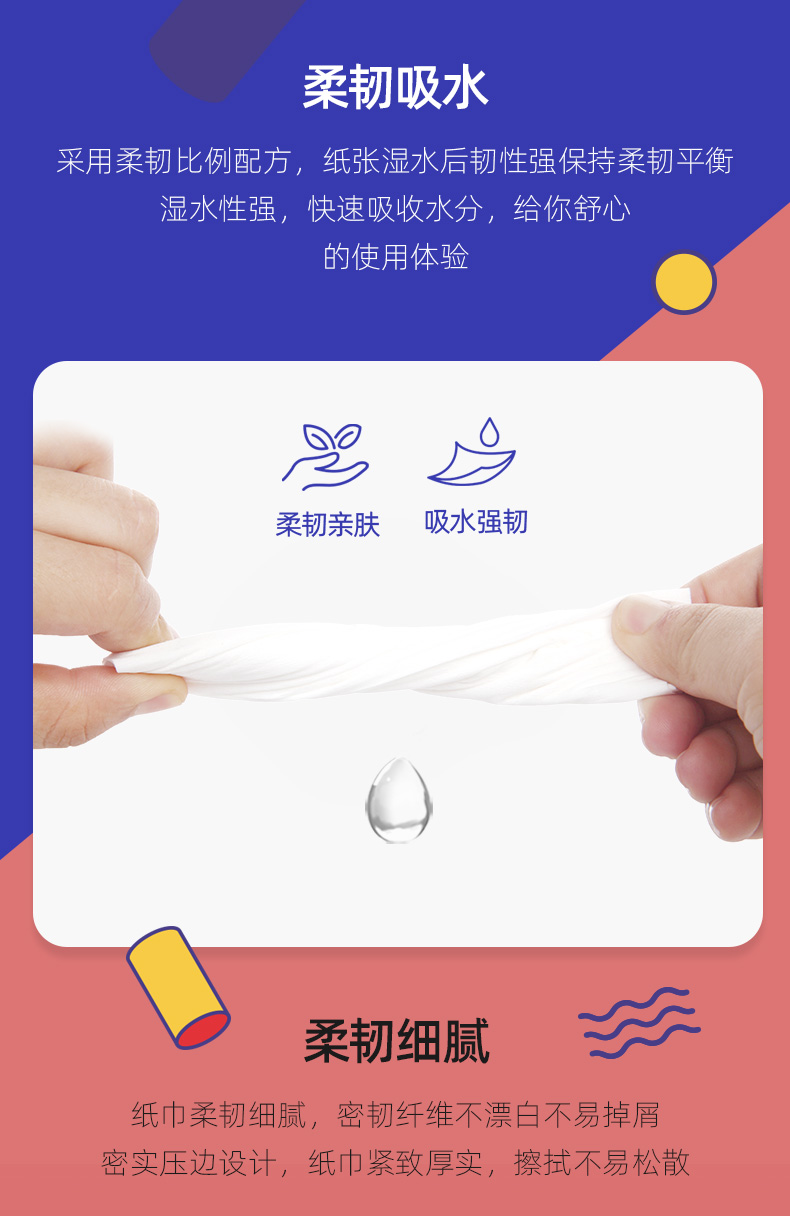 大牌,功夫本色,高温处理,四层加厚,湿水不易破,擦拭不掉屑;无荧光剂,无漂白剂,质感细腻,柔软舒适;限时抢购,手慢无!!