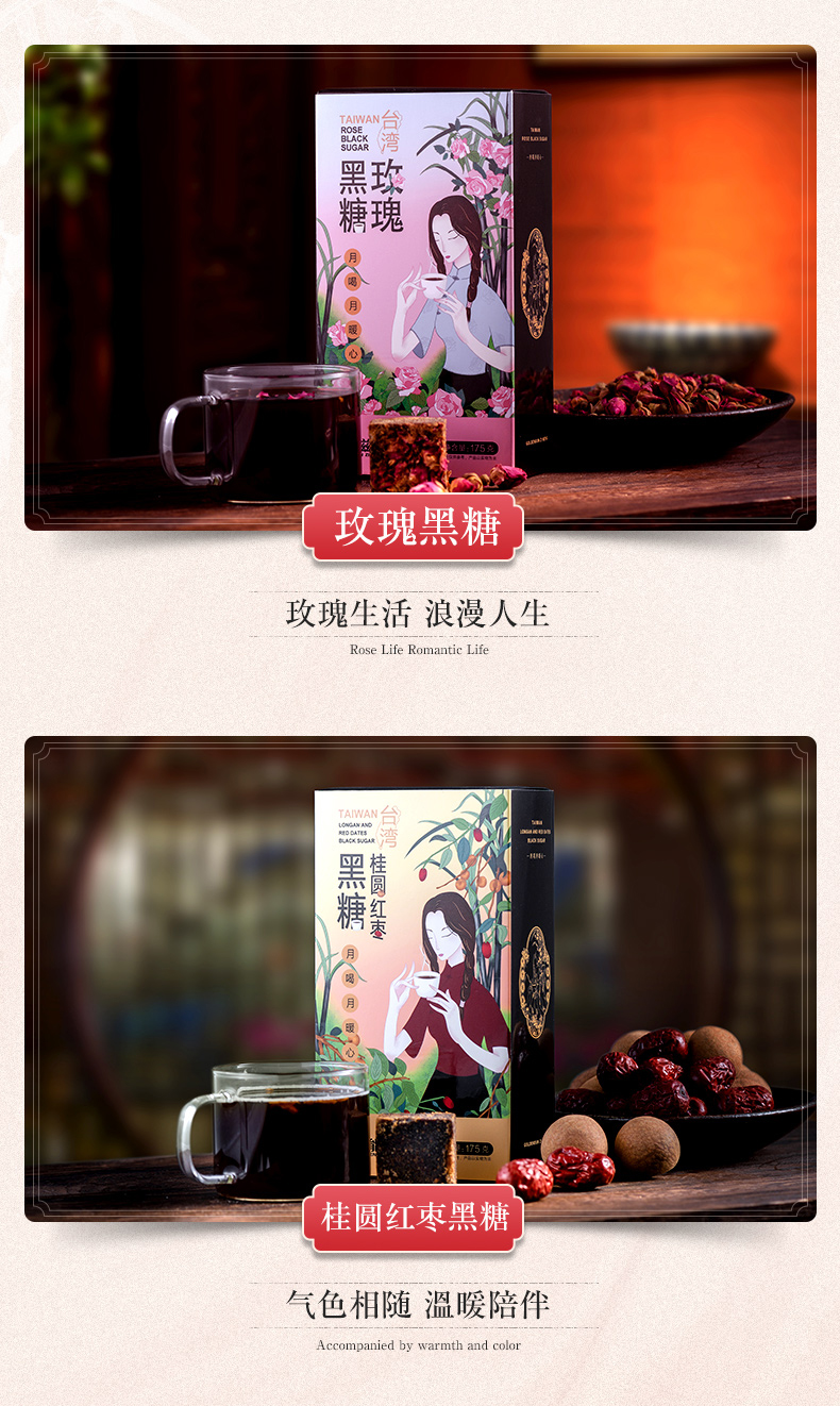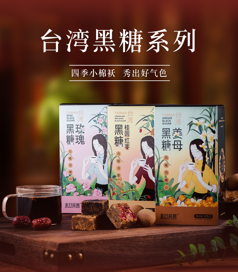 金日滋能黑糖 台湾进口黑糖姜茶大姨妈 玫瑰桂圆红糖冲饮小袋装