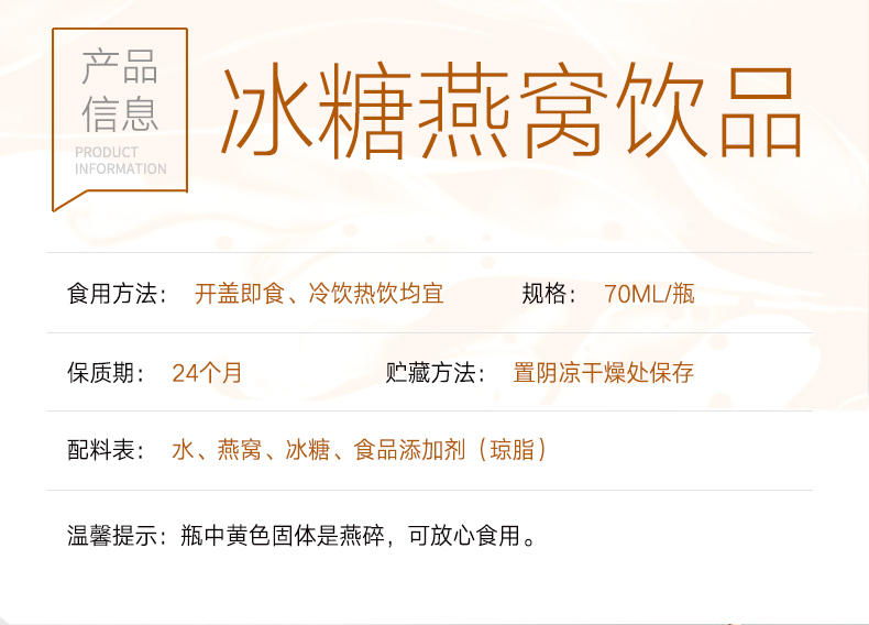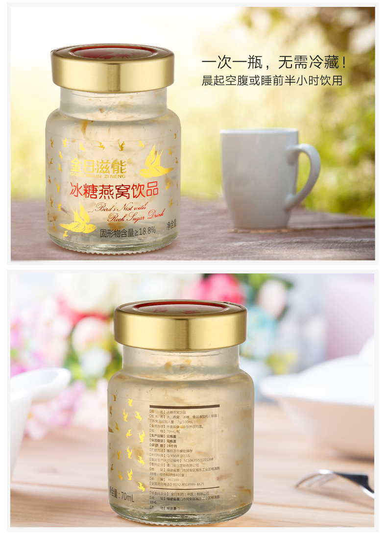 金日滋能 即食冰糖燕窝饮品70ml*3瓶 孕妇即食燕窝营养品