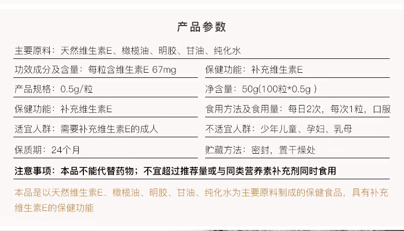 金日滋能 天然维生素E软胶囊 0.5g/粒*100粒 补充维生素e