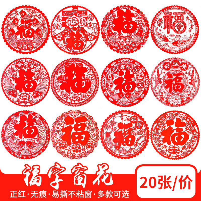 福字门贴窗花新年装饰2020用品春节过年剪纸贴纸玻璃贴静电贴