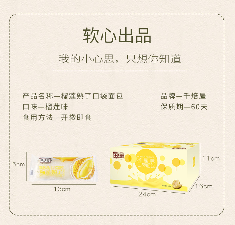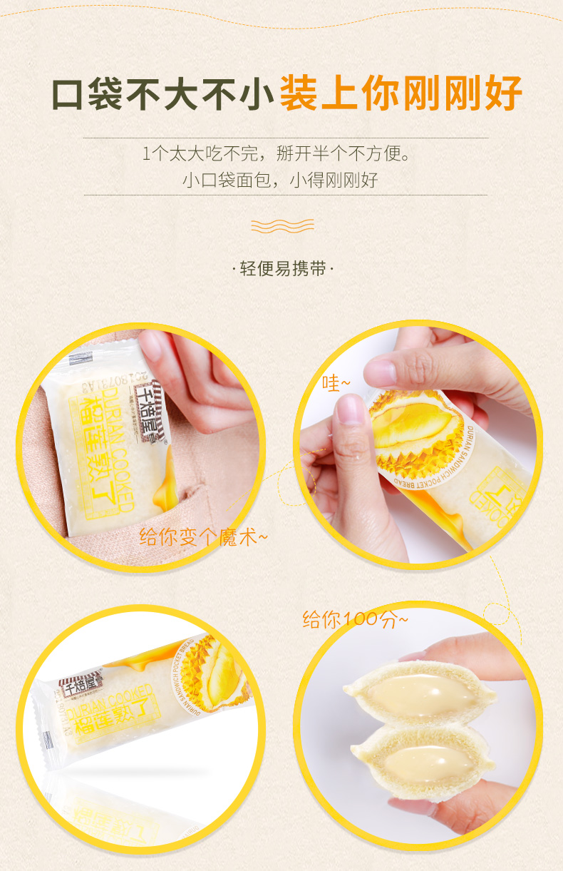 千焙屋乳酸菌小口袋面包夹心榴莲芝士560g早餐糕点蛋糕休闲零食