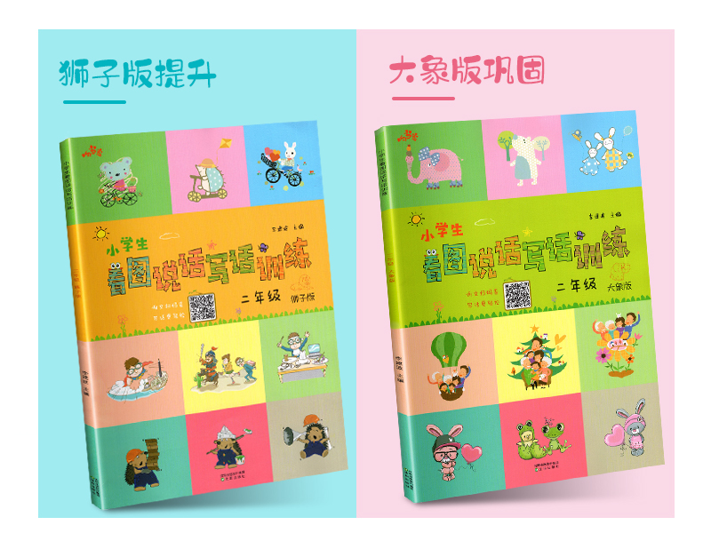看图写话二年级看图说话写话训练本2册注音版人教版小学语文知识拼音阅读理解专项训练书二年级一课一练好词好句好段大全作文书