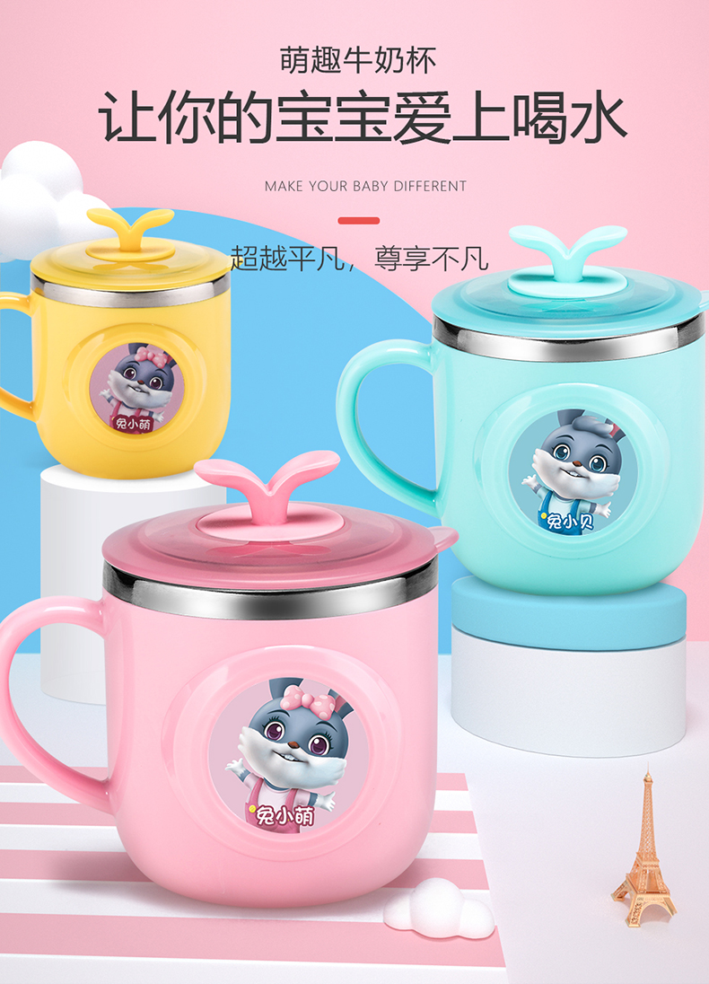 儿童水杯家用牛奶杯不锈钢幼儿园宝宝喝水杯冲奶粉专用口杯子防摔