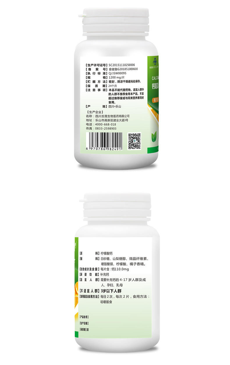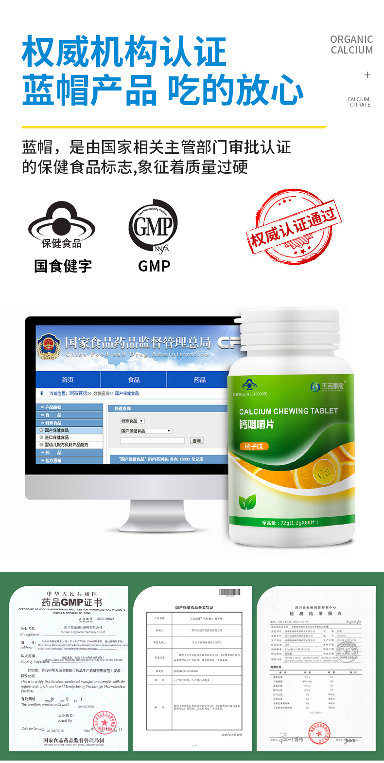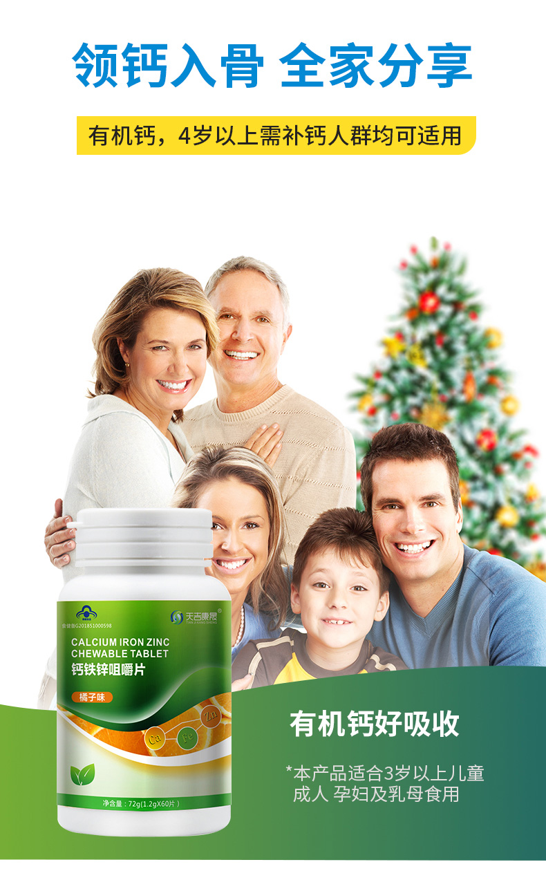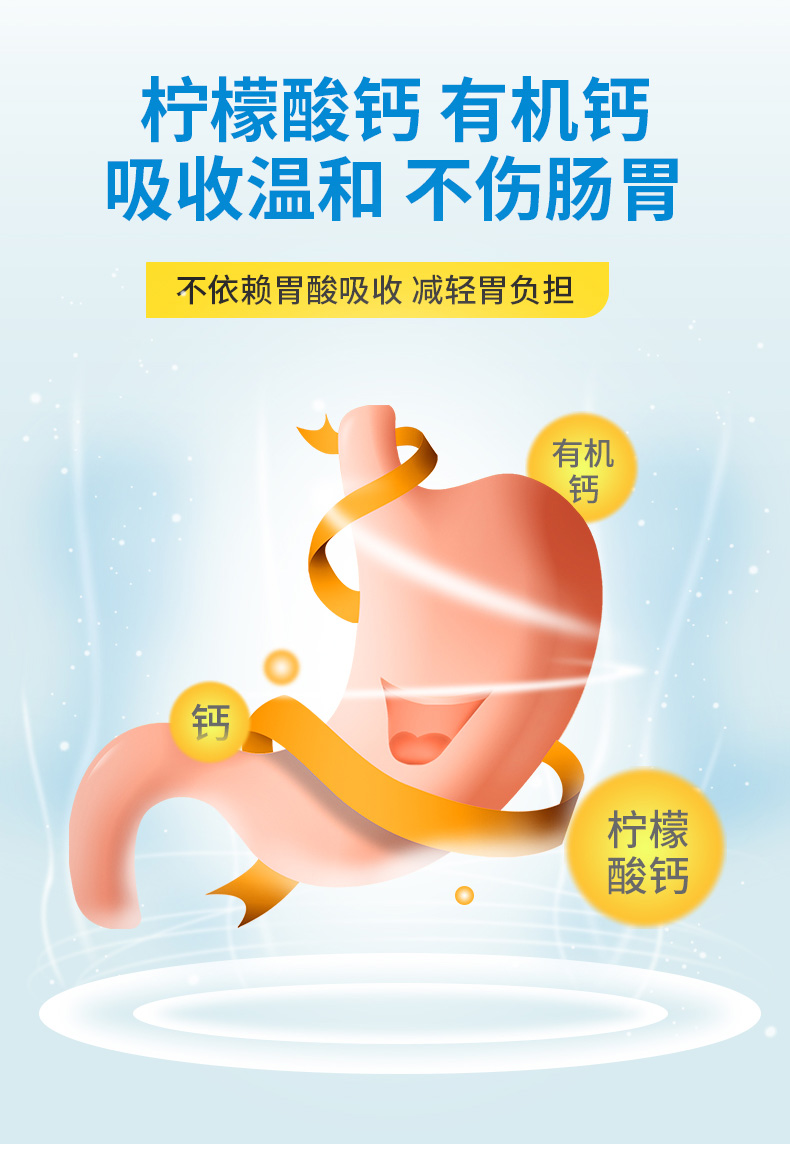 天吉康晟钙片柠檬酸钙成人中老年儿童青少年补钙片橘子味咀嚼片