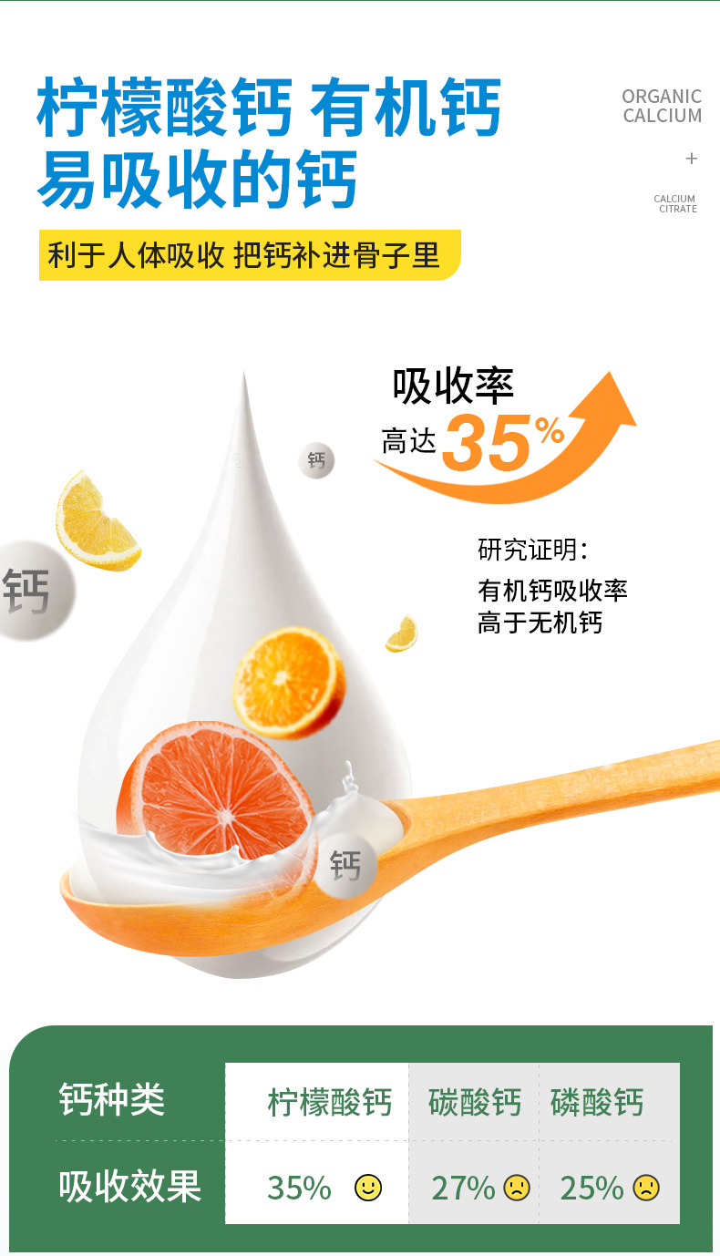 超值1整瓶装,橘子口味,优质有机钙,吸收更好含量更高,3岁以上人群均适用,轻松补充每日所需,促进骨骼发育,助力骨骼成长,增加骨密度,维持骨骼坚固和健康,是需补钙人群必备之选!