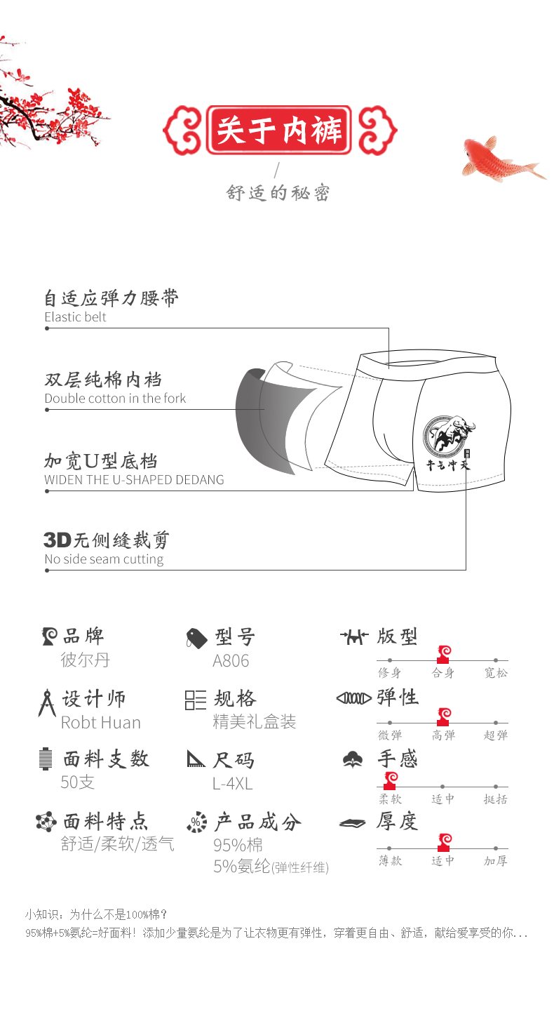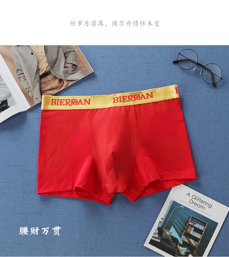 彼尔丹两条装男士内裤红色本命年内裤男属鼠纯棉四角裤鼠年平角裤