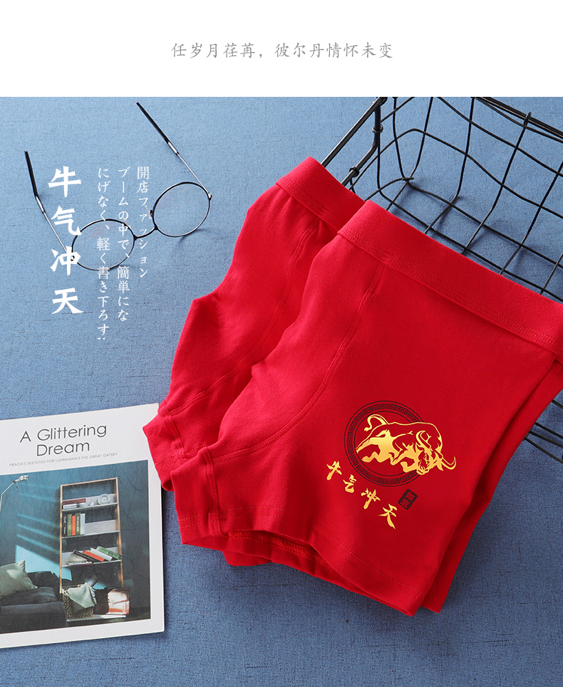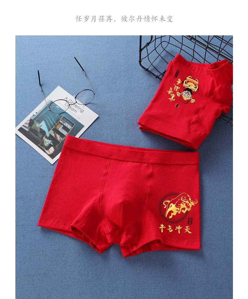 【赠运费险】明年就是鼠年啦!本命年的男同胞们红内裤囤起来!纯棉,上身柔软透气,超舒服~还是精致的烫金图案,更显喜庆!送人或者自己穿都可以!