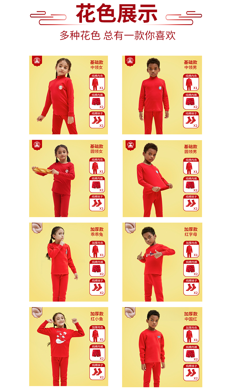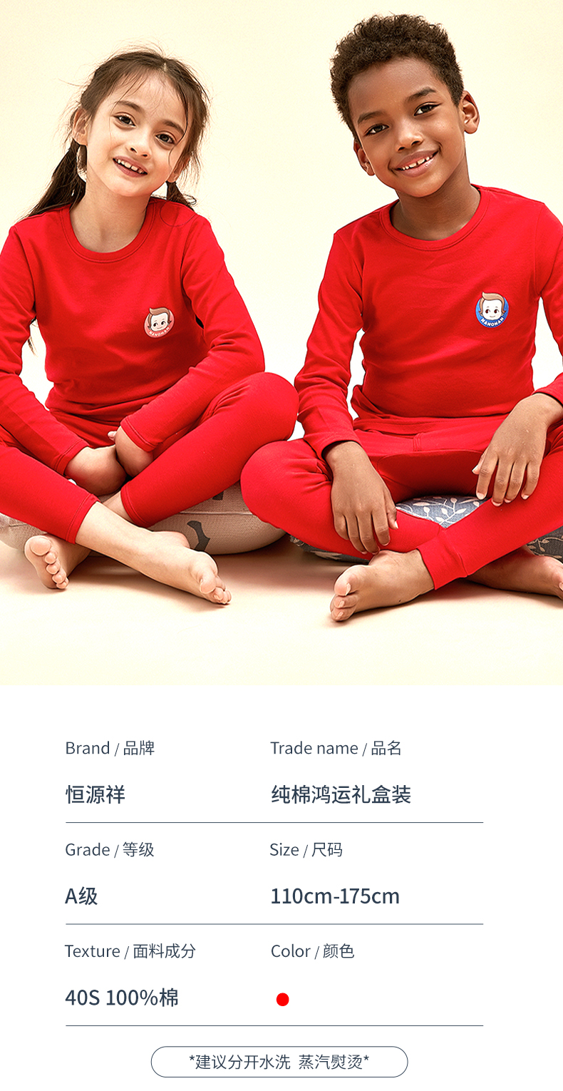 【恒源祥】儿童鸿运当头内衣,本命年保暖,红红火火,品牌面料,舒适度值得信赖!各种组合,极速发货!