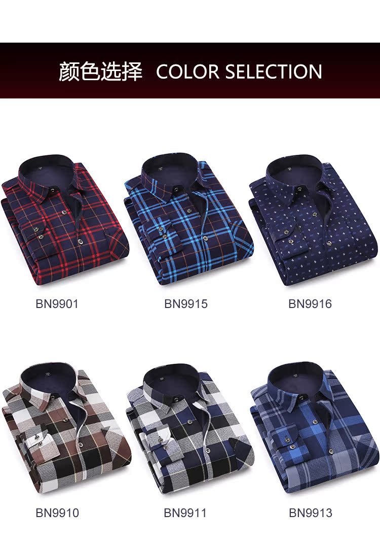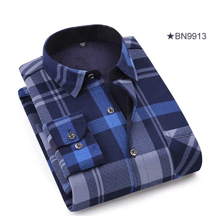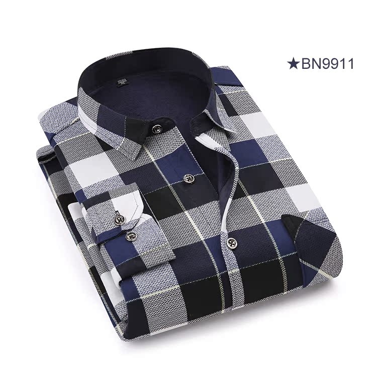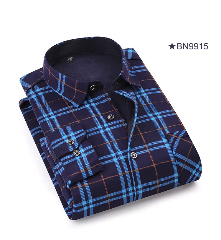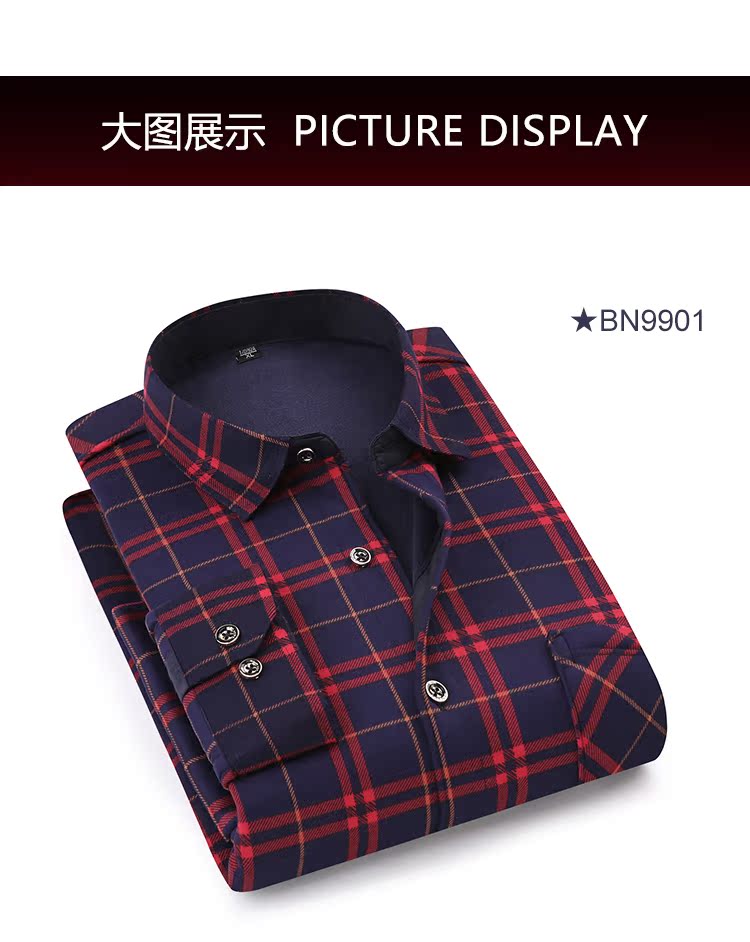 意邦伦男士加绒加厚休闲衬衫2019冬装新款柔软格子长袖衬衣