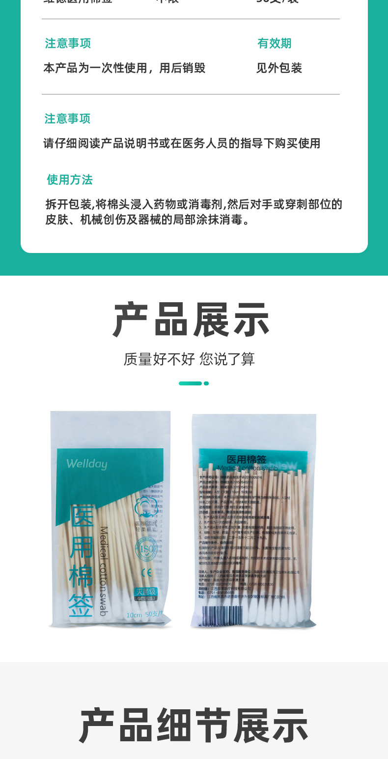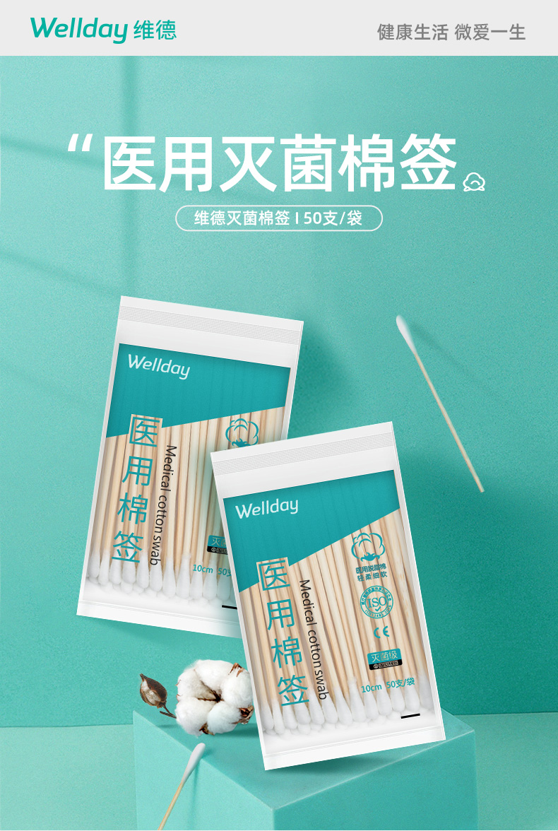 医用棉签消毒棉棒无菌一次性包邮木棒大单头婴儿化妆掏耳朵医药疗