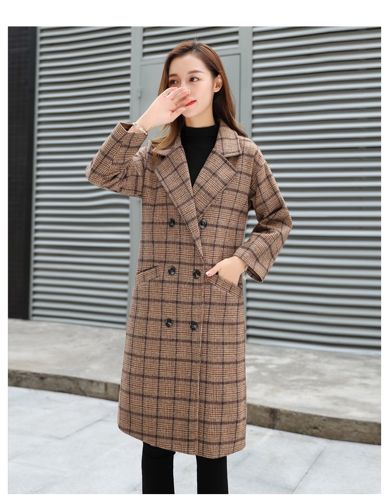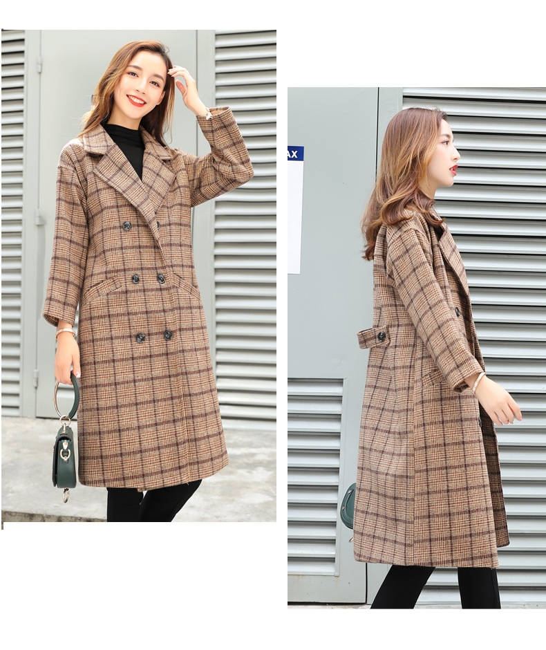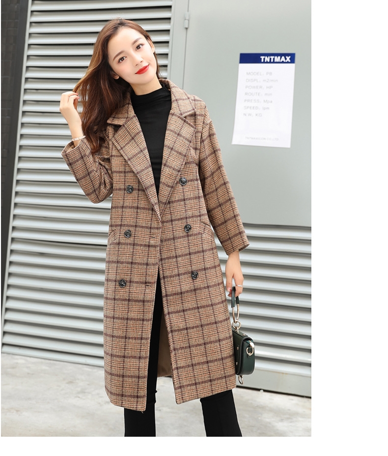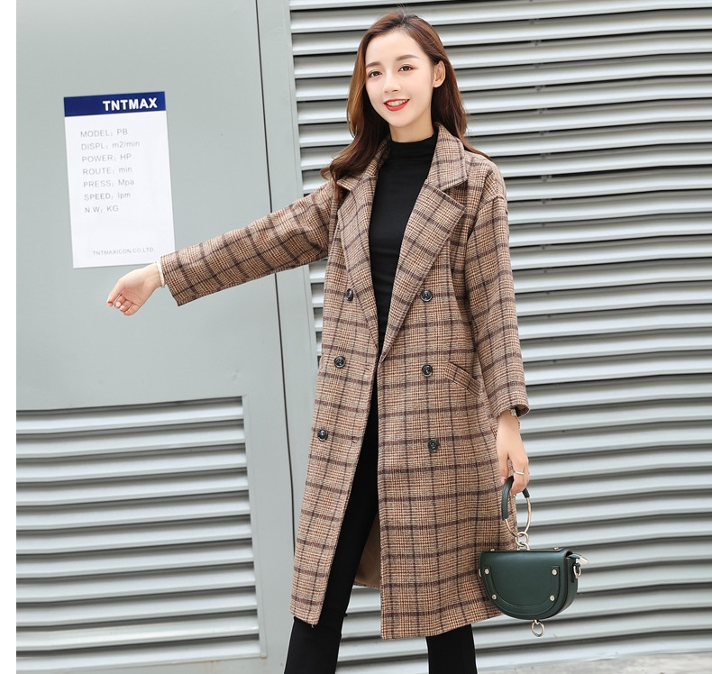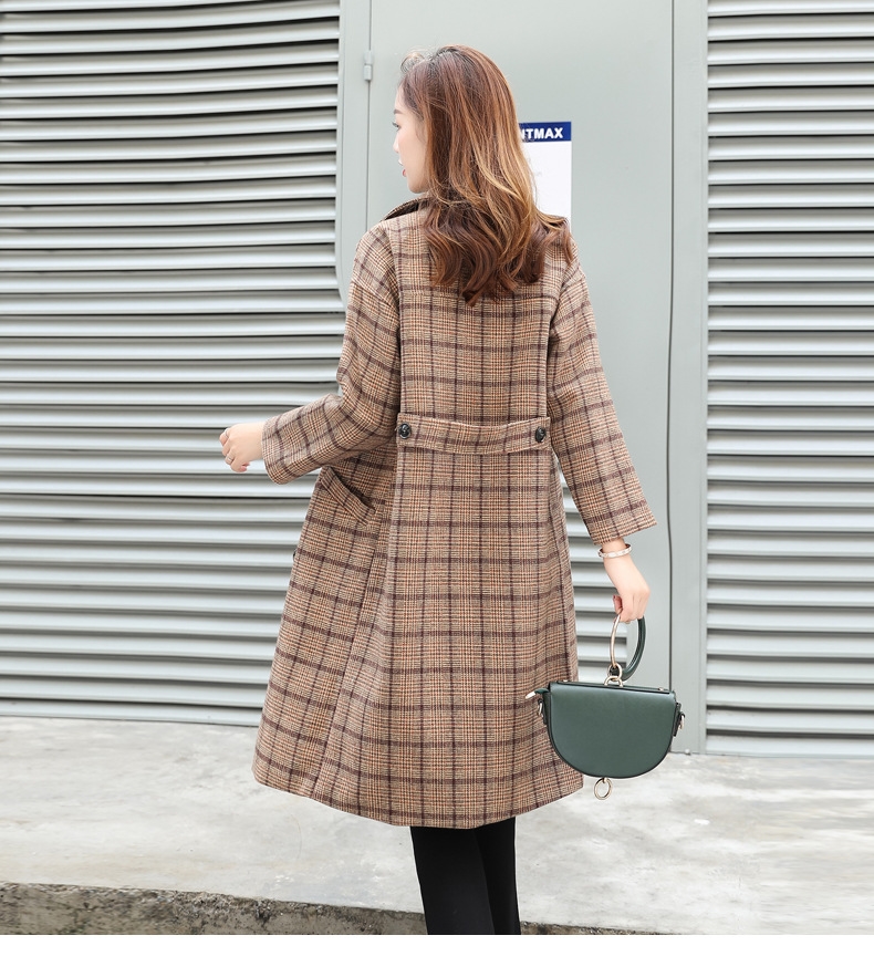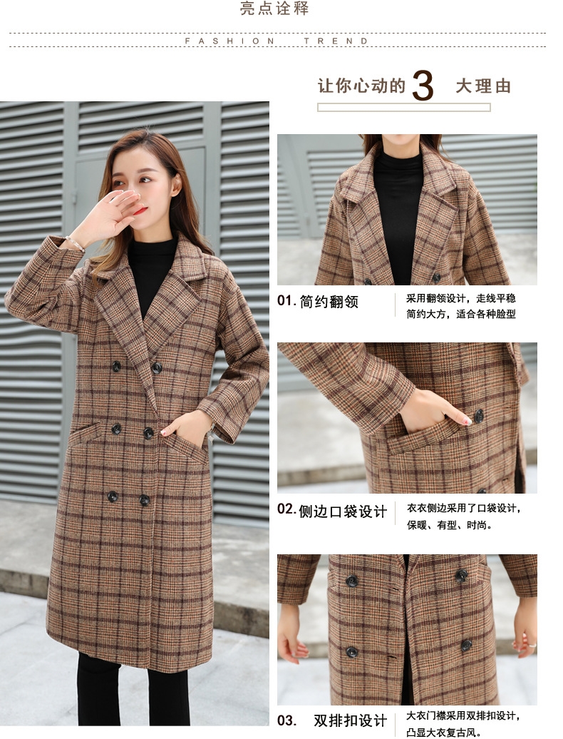冬加厚新款毛呢外套女韩版中长款加棉格子呢大衣双排扣修身显瘦潮