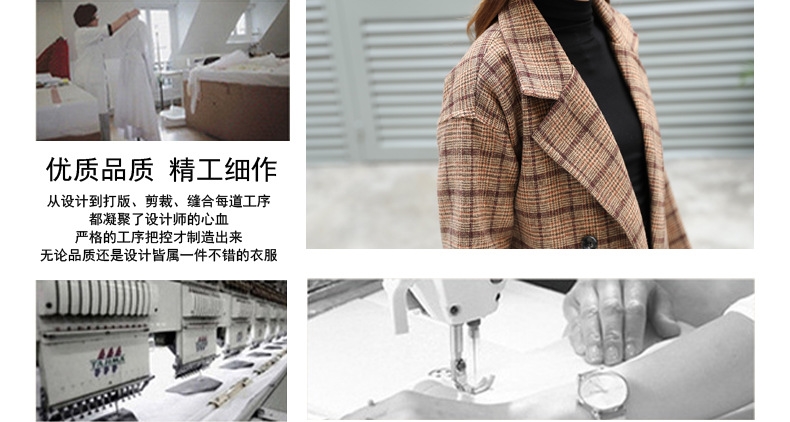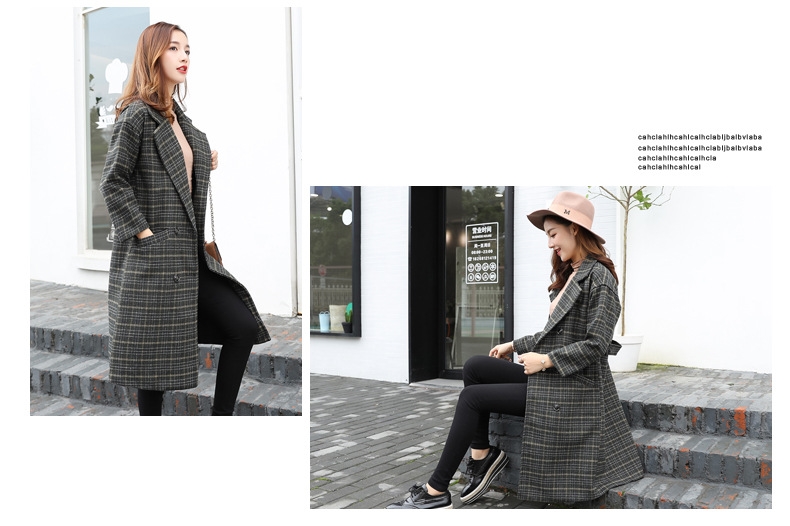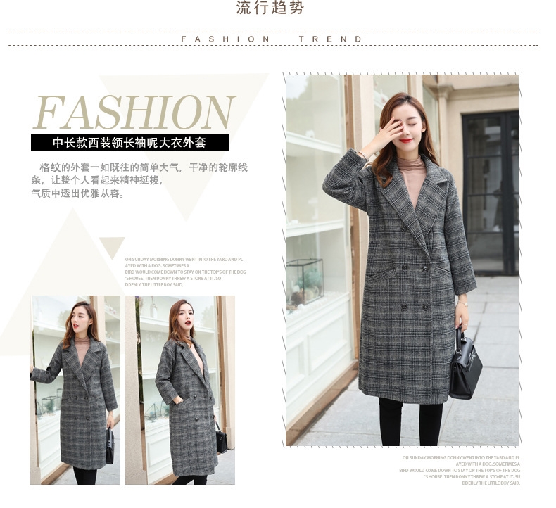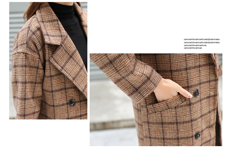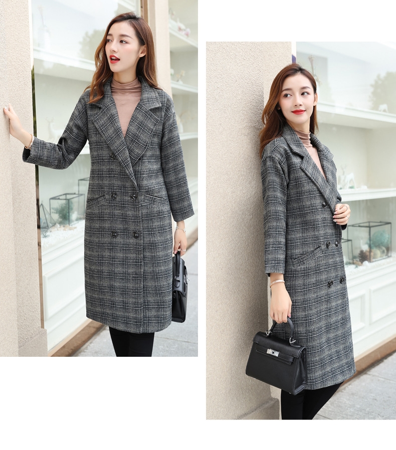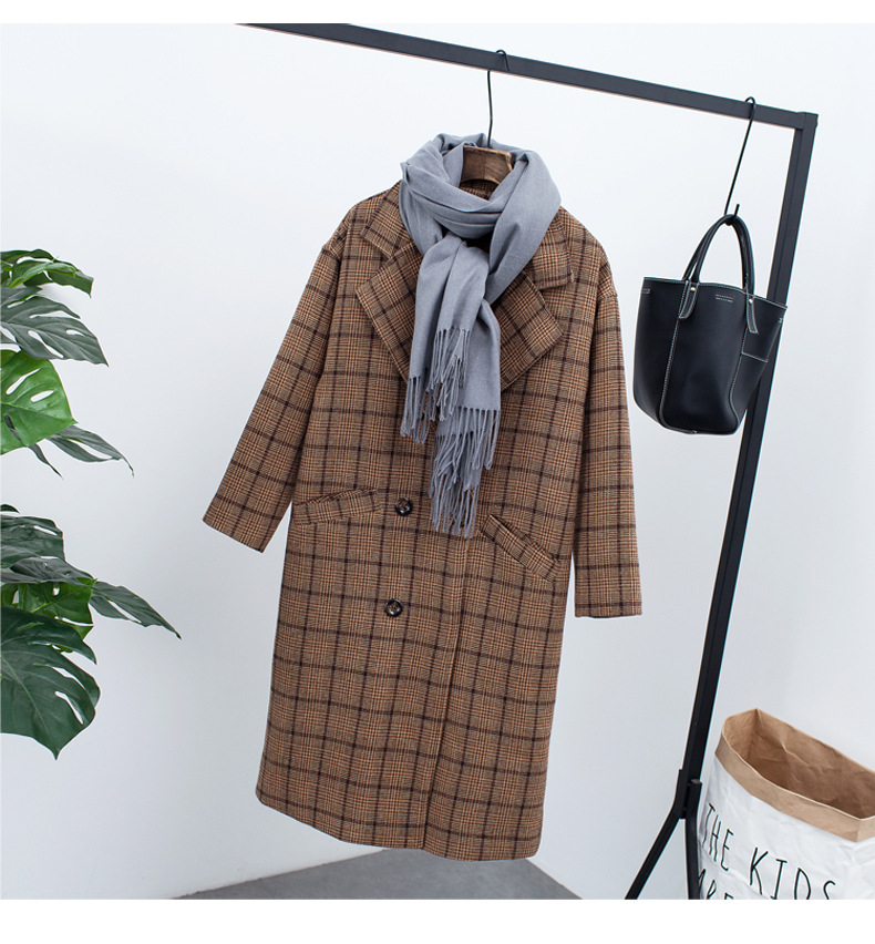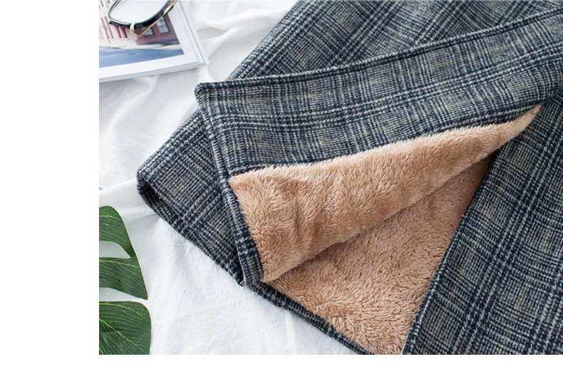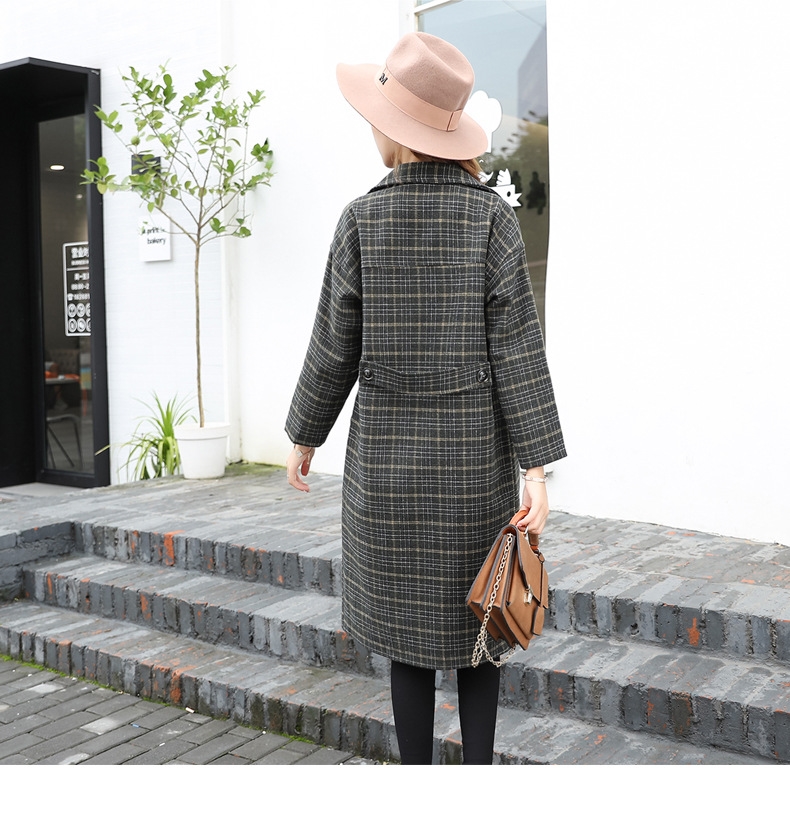 冬加厚新款毛呢外套女韩版中长款加棉格子呢大衣双排扣修身显瘦潮