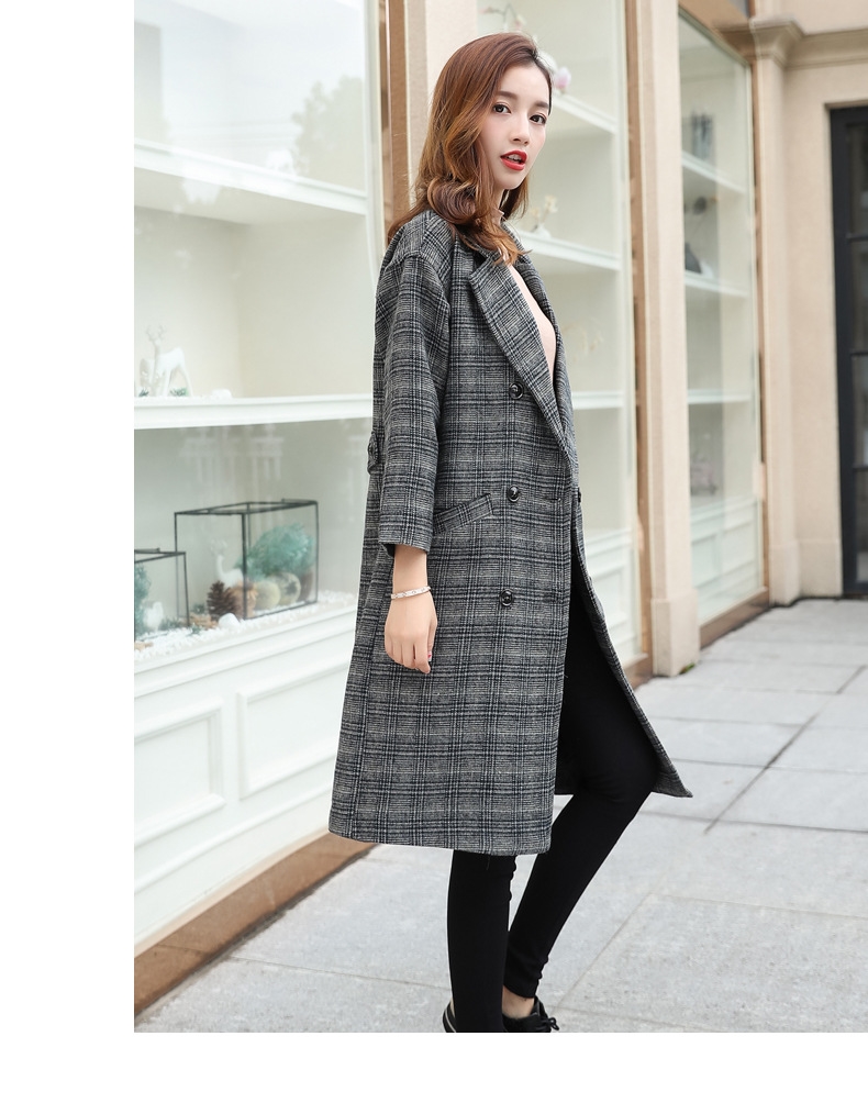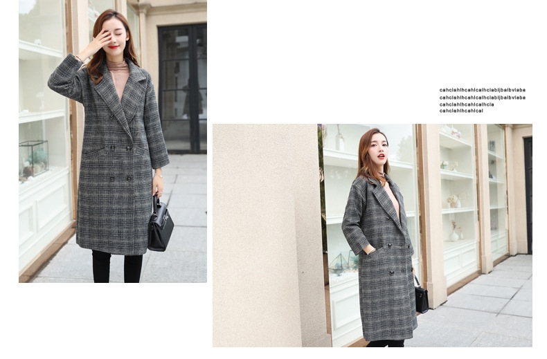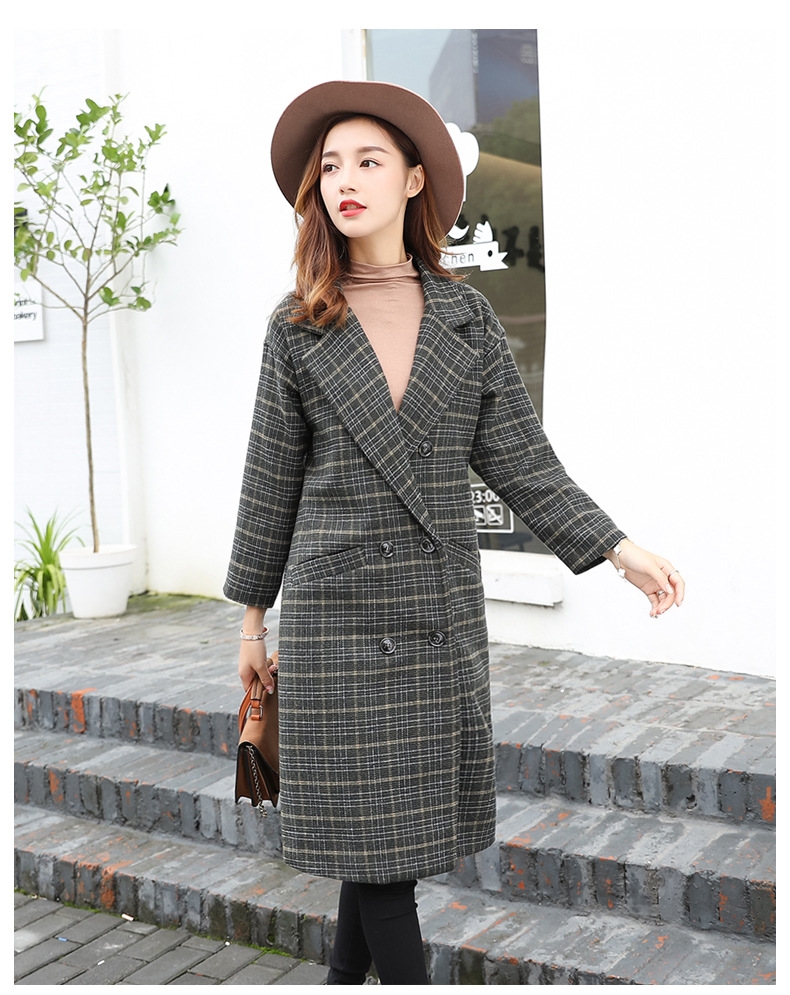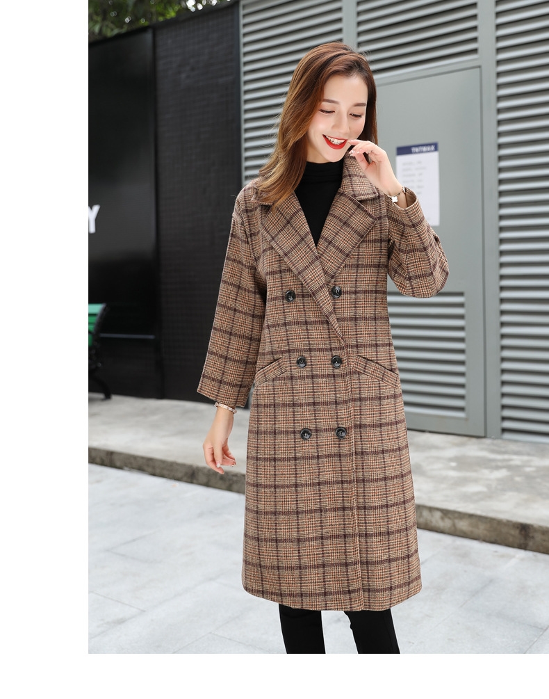 【3色可选!】采用简约翻领,适合各种脸型,加厚加棉超保暖,侧边采用口袋设计,有型时尚,经典双排扣,格纹外套,简单大气,凸显大衣复古感!~