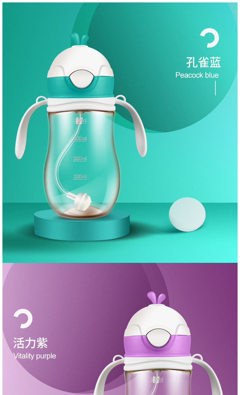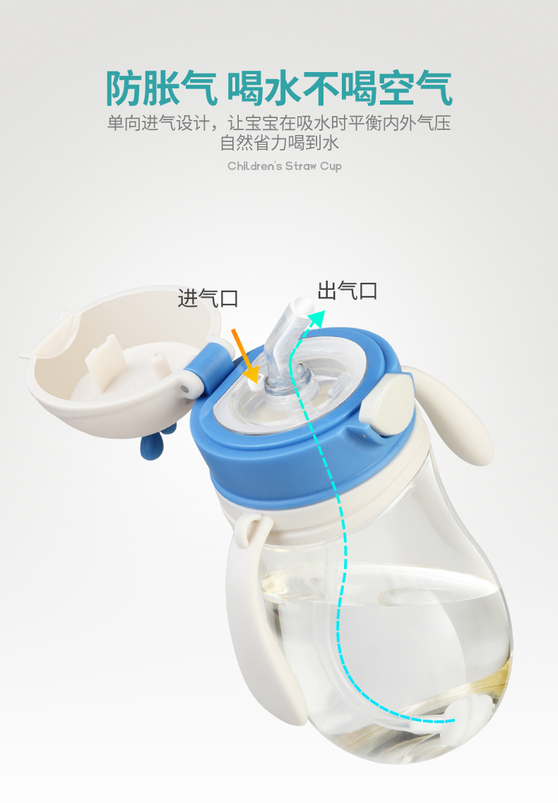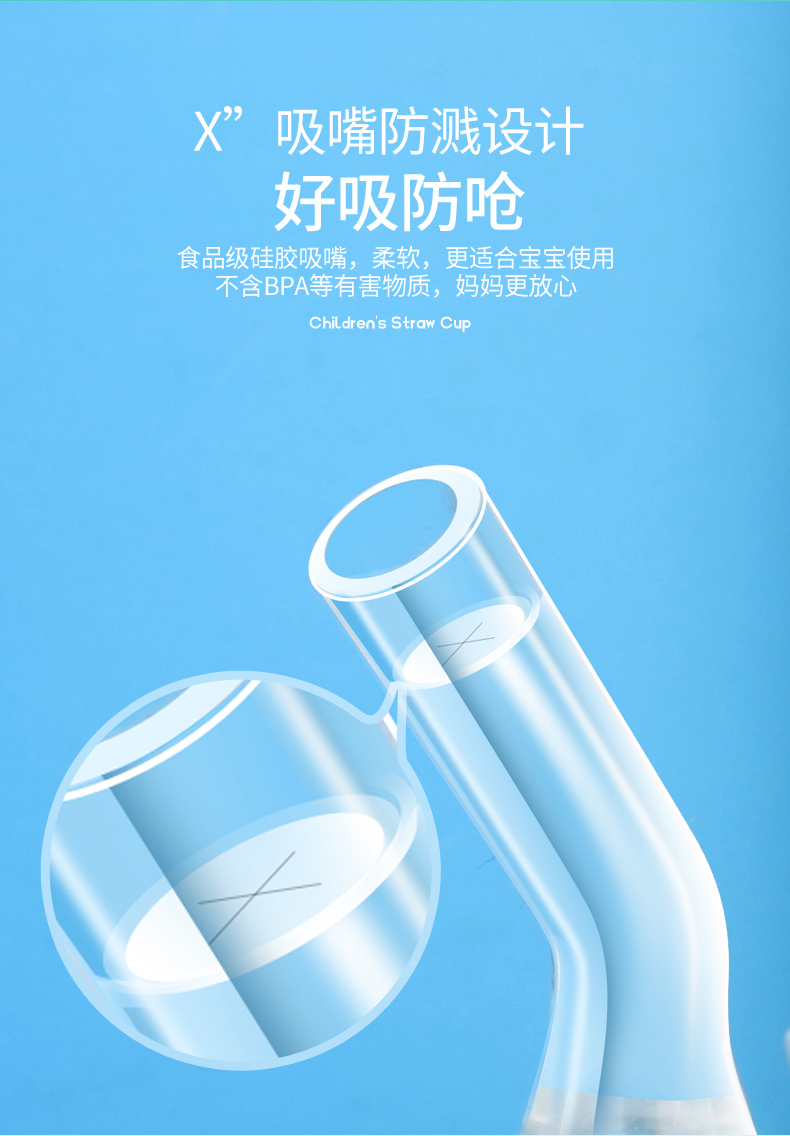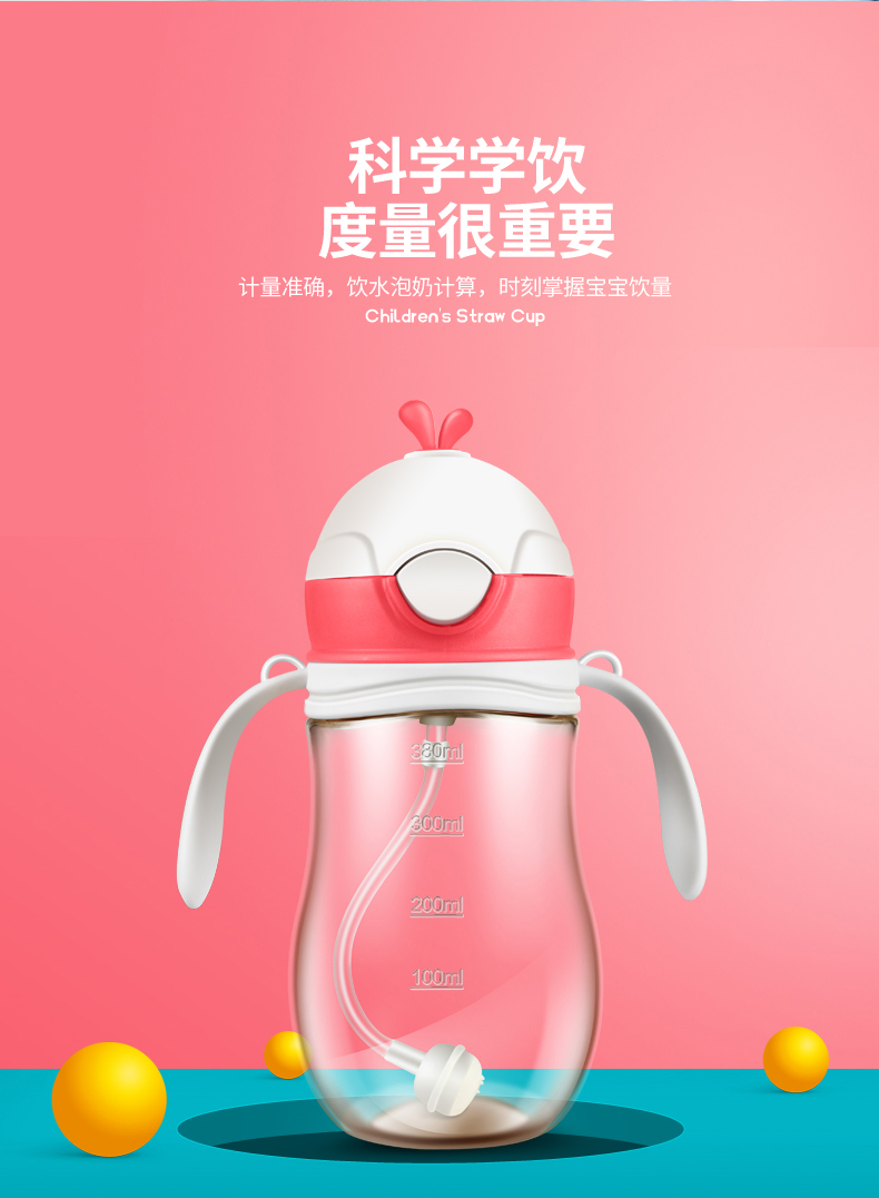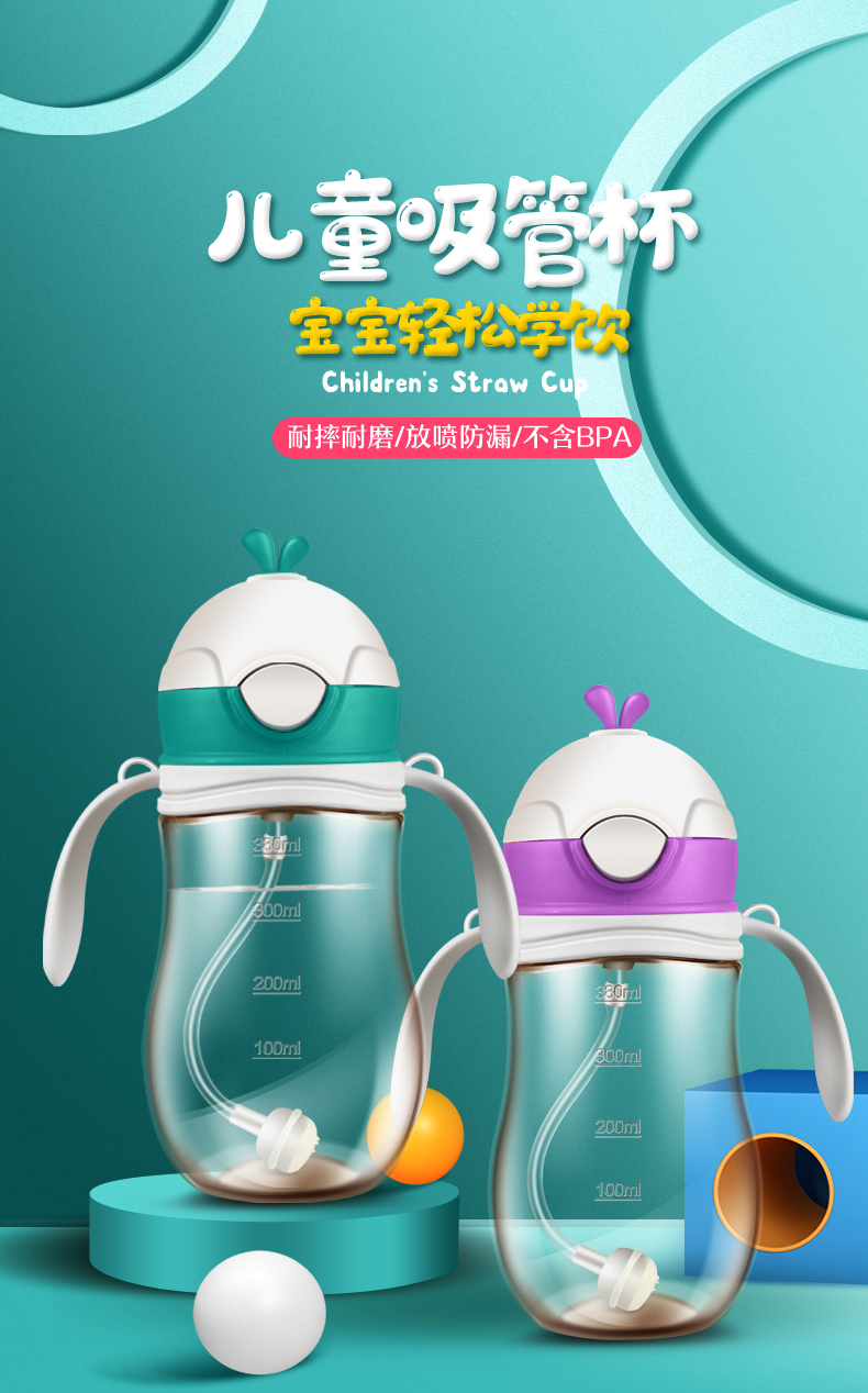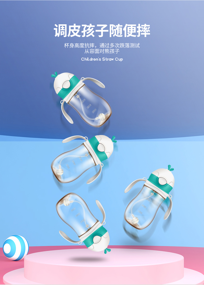 儿童吸管杯,耐摔耐磨,放喷防漏,不含BPA,防呛吸管,带重力球,轻松喝水,安全好吸,宝宝轻松学饮