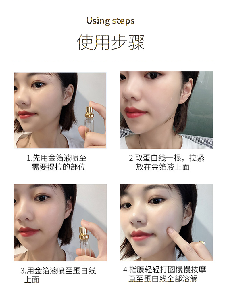 【2瓶蛋白线】这次是4瓶线!!!黄金蛋白线精华液,改善细纹、补水保湿、滋养、淡化细纹,金箔多肽自有抗揍功效,抗松弛,抗多种皱纹【全国包邮】