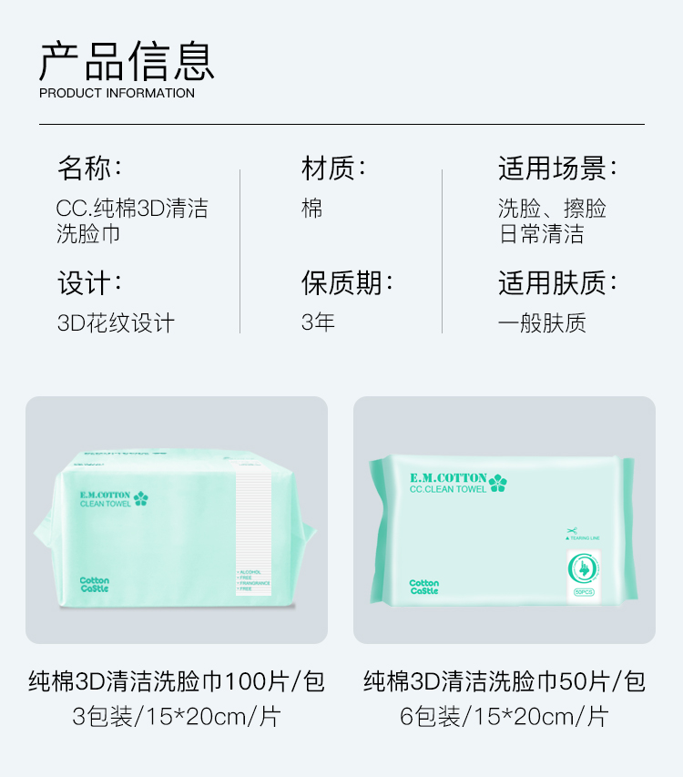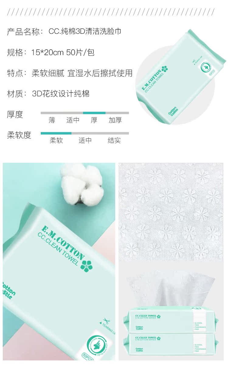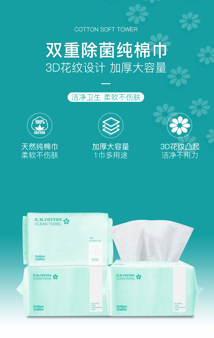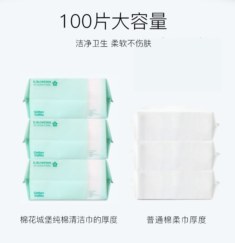 【推荐】【超值组合装3包】美国棉花城堡一次性洗脸巾,加厚材质,耐拉扯更易用,柔软凹凸EM设计,有效清洁肌肤,臭氧紫外线双重杀菌,让护肤更干净!超级漂亮的包装,这个棉柔巾很不错的,挺好用的~