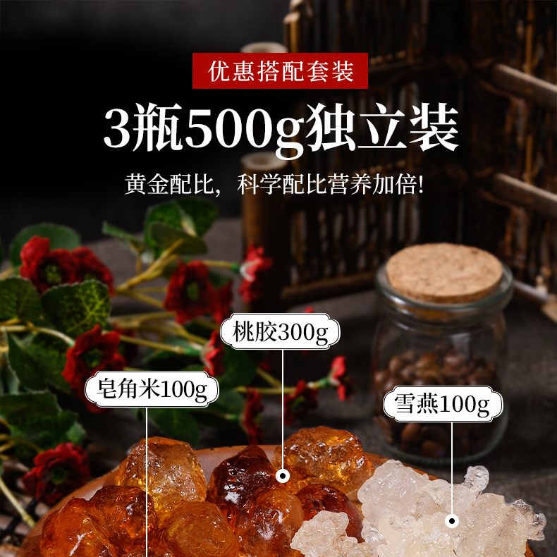 云南桃胶雪燕皂角米组合装旗舰店正品500g非印度特级天然野生银耳