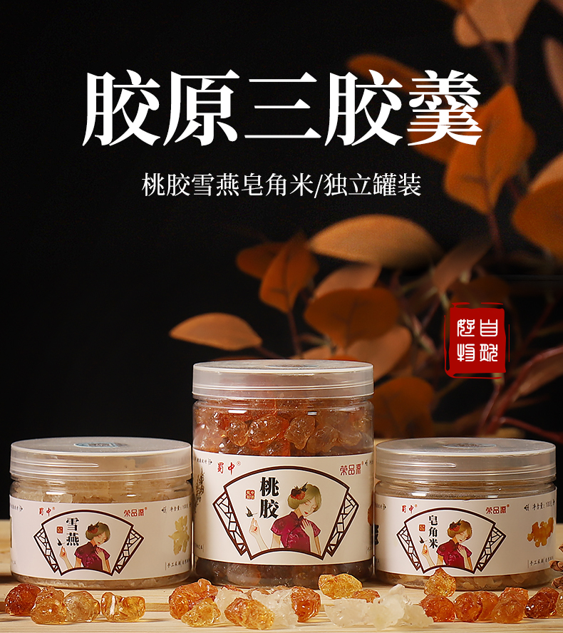 号称植物界的胶原蛋白!女人必囤的养颜羹~胶原组合3罐装,300g桃胶+100g拉丝雪燕+100g皂角米,精选优品,圆润饱满,晶莹剔透,丝丝稠密,补充胶原蛋白,吃出好肌肤!