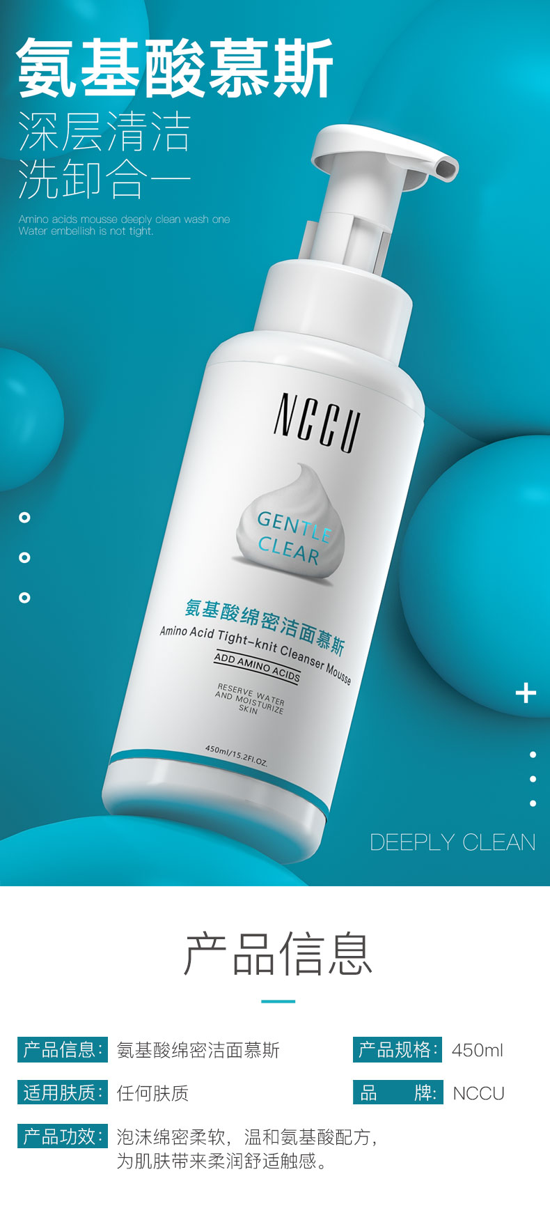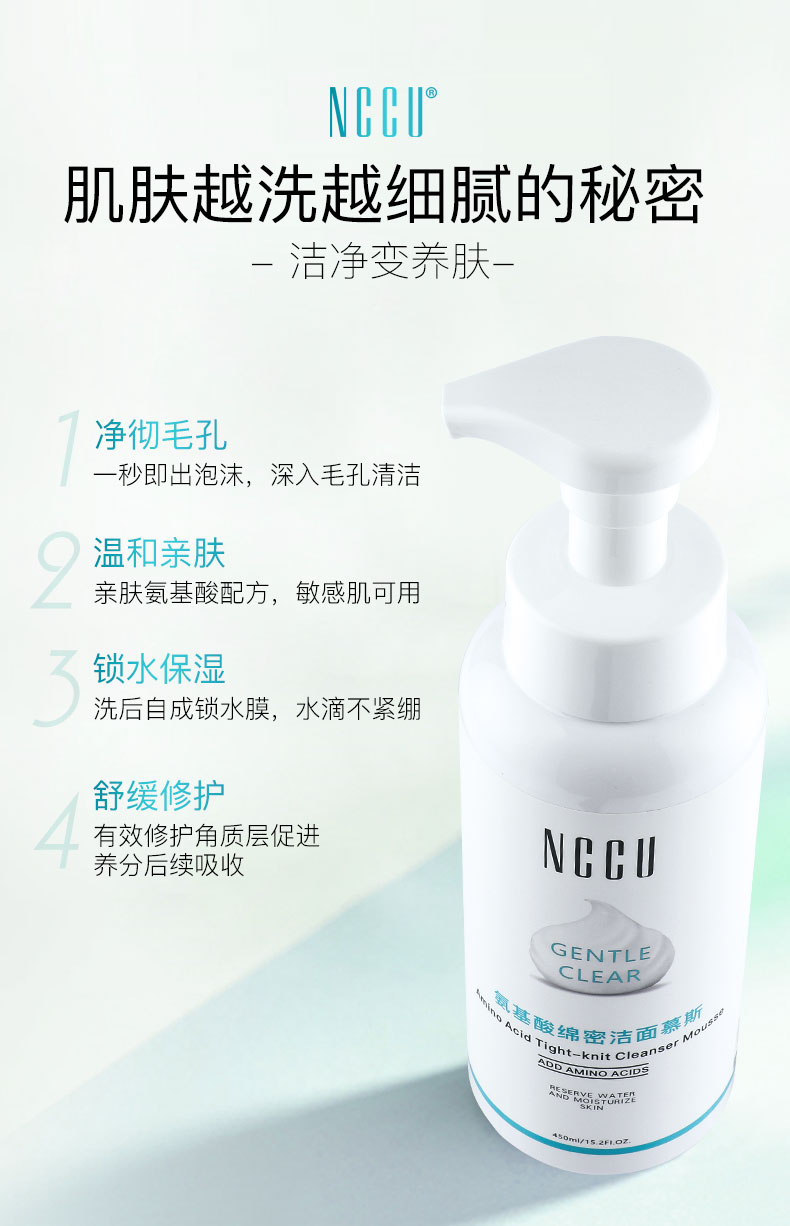 香港NCCU氨基酸泡沫洁面乳慕斯洗面奶女男士温和深层清洁补水保湿