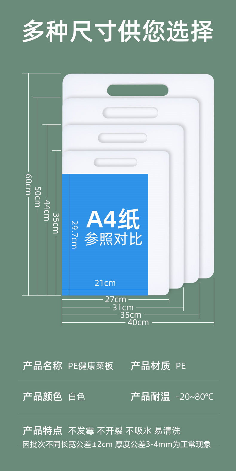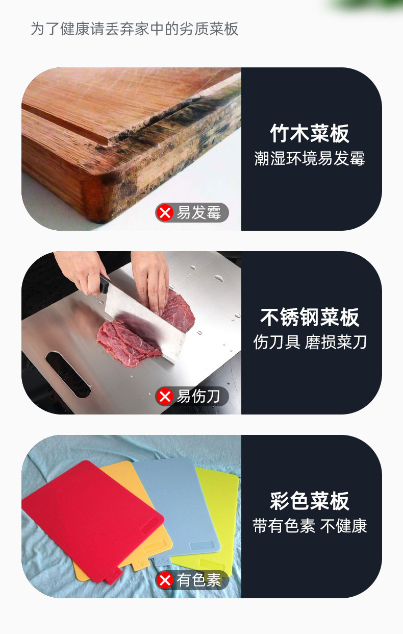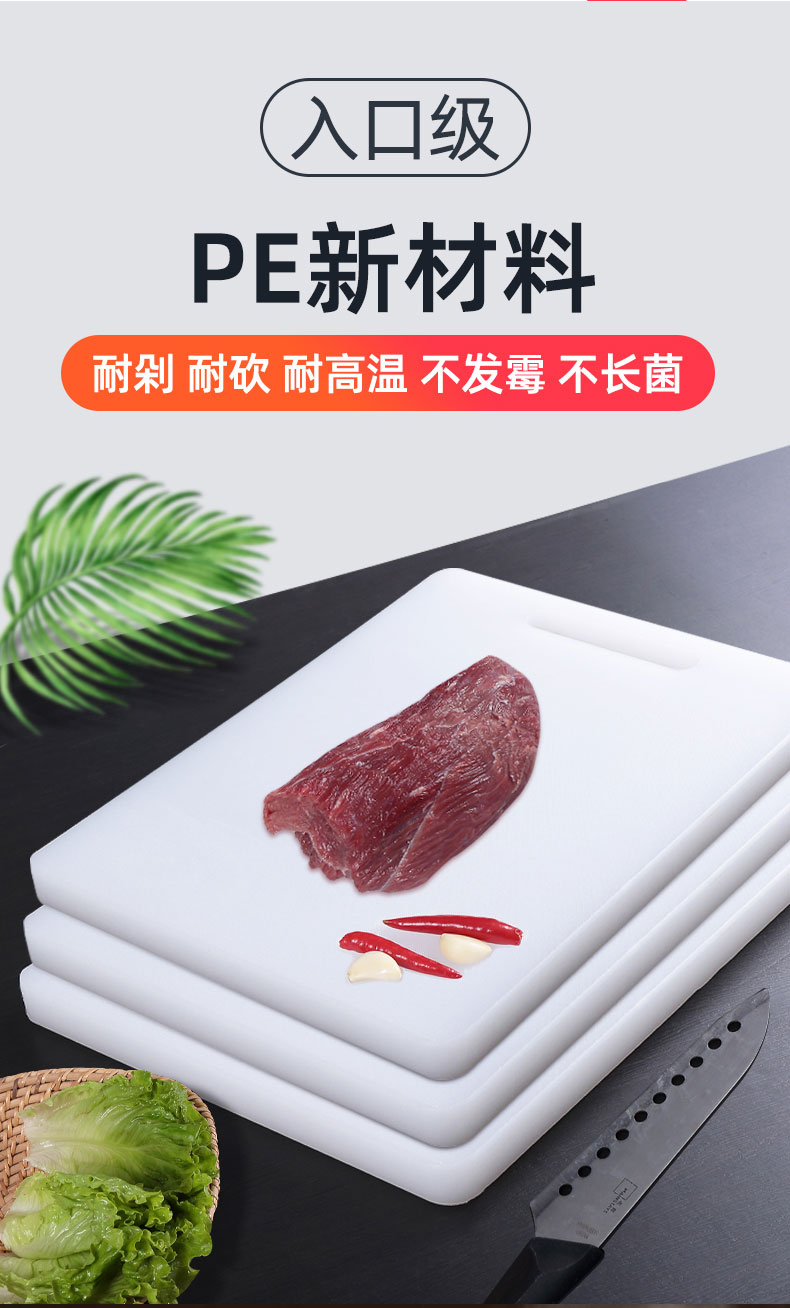 买一送一小号菜板一块,PE新材料,抗菌防霉,耐高温,怎么烫都不怕,加厚耐用,易清洗不开裂,随你怎么砍!喜欢我就来砍我!