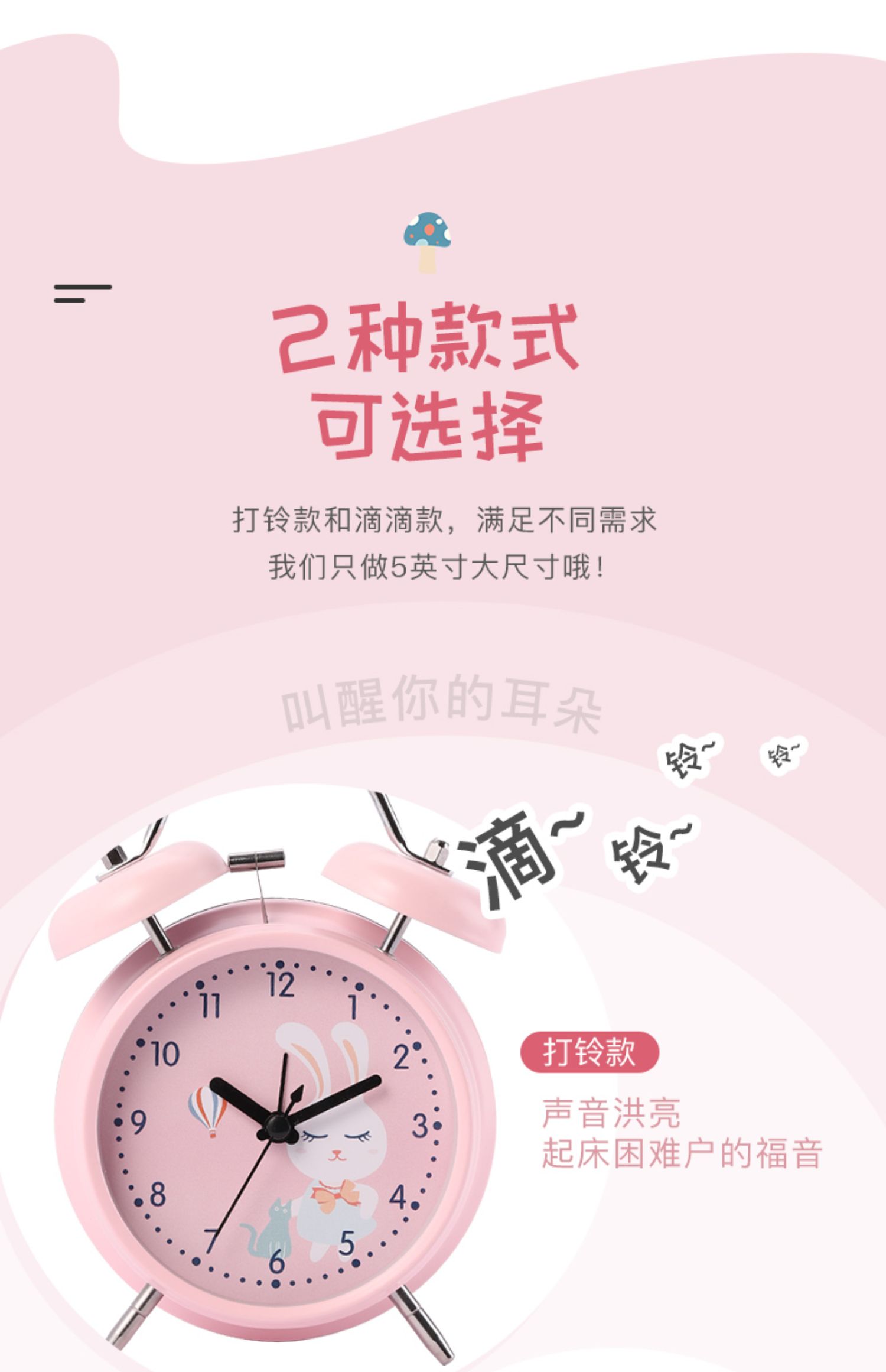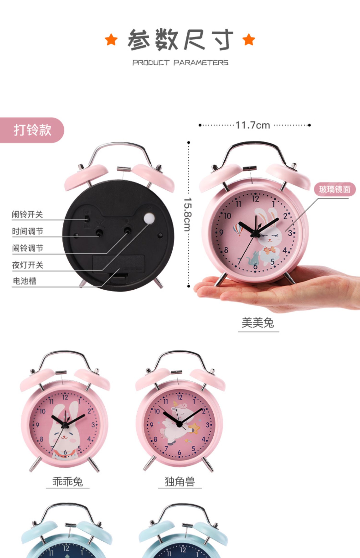 niwawa静音床头闹钟小学生用儿童专用卧室可爱女生宿舍卡通闹铃