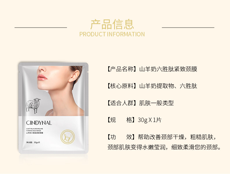 第二件10元!仙蒂奈儿山羊奶保湿颈膜 淡化细纹 补水保湿嫩白肌肤