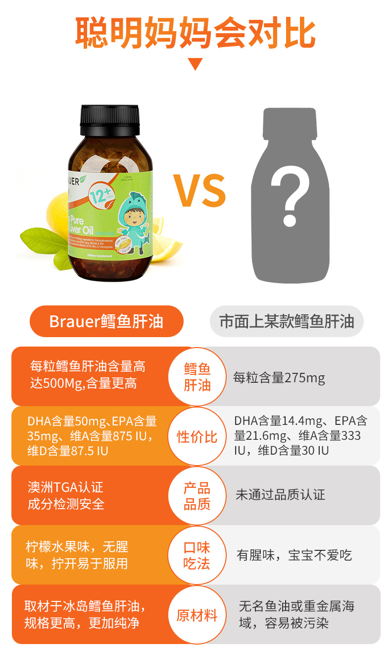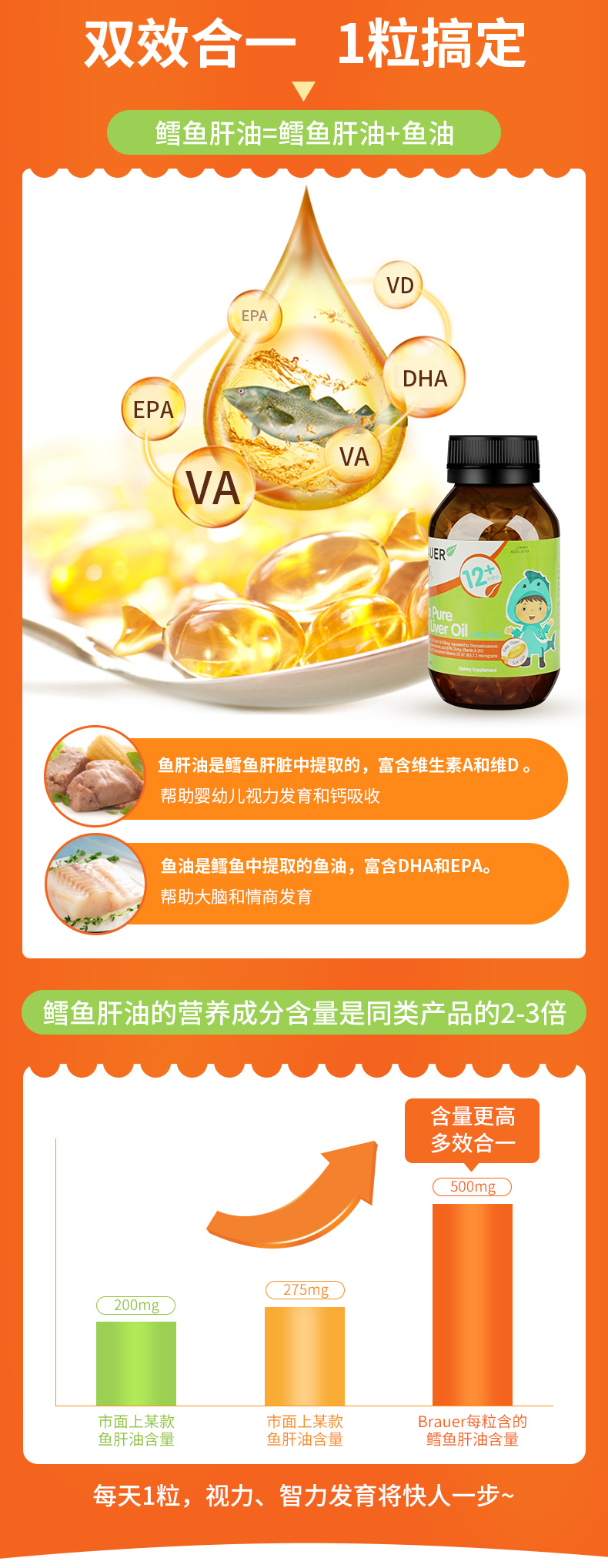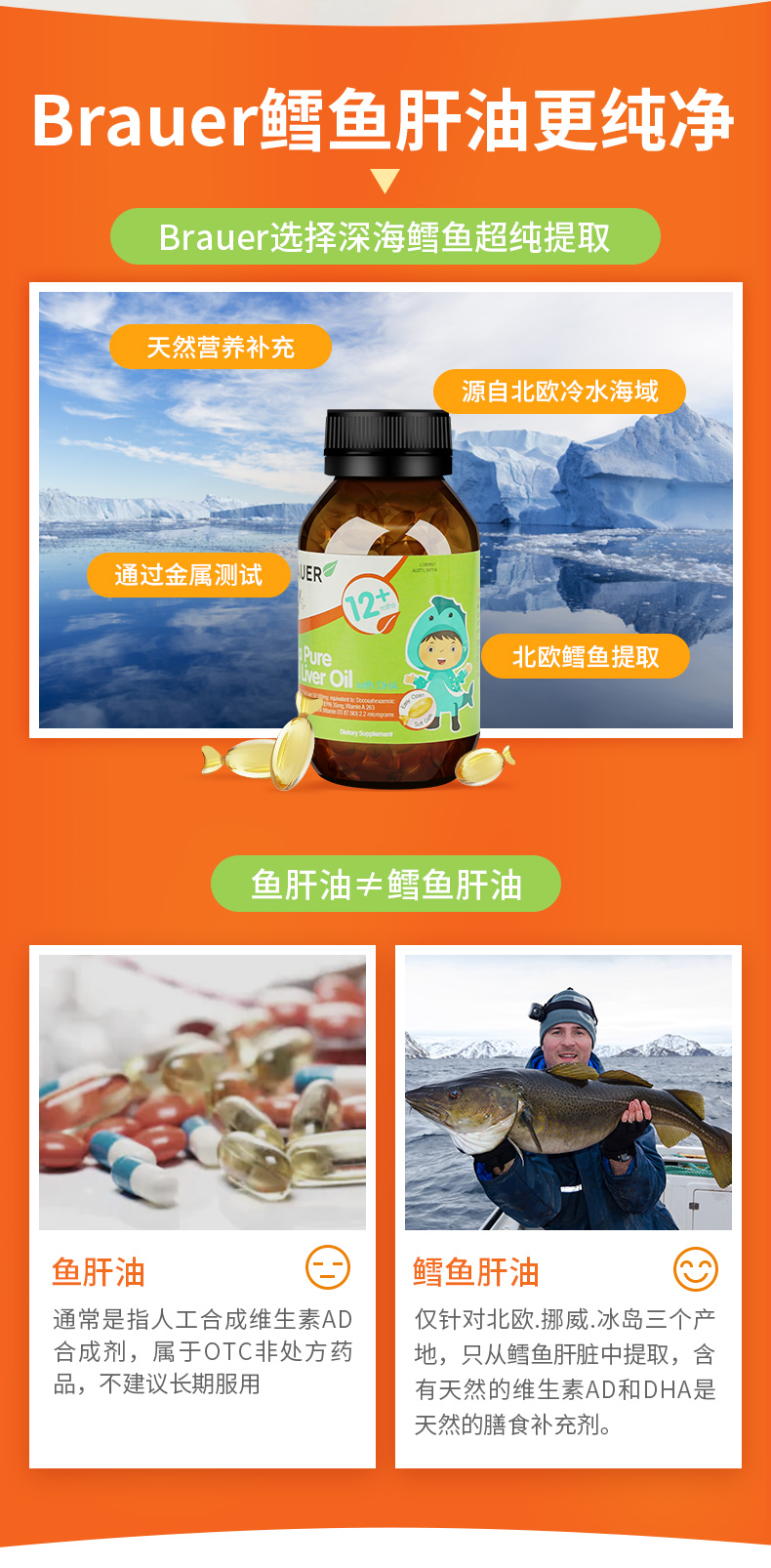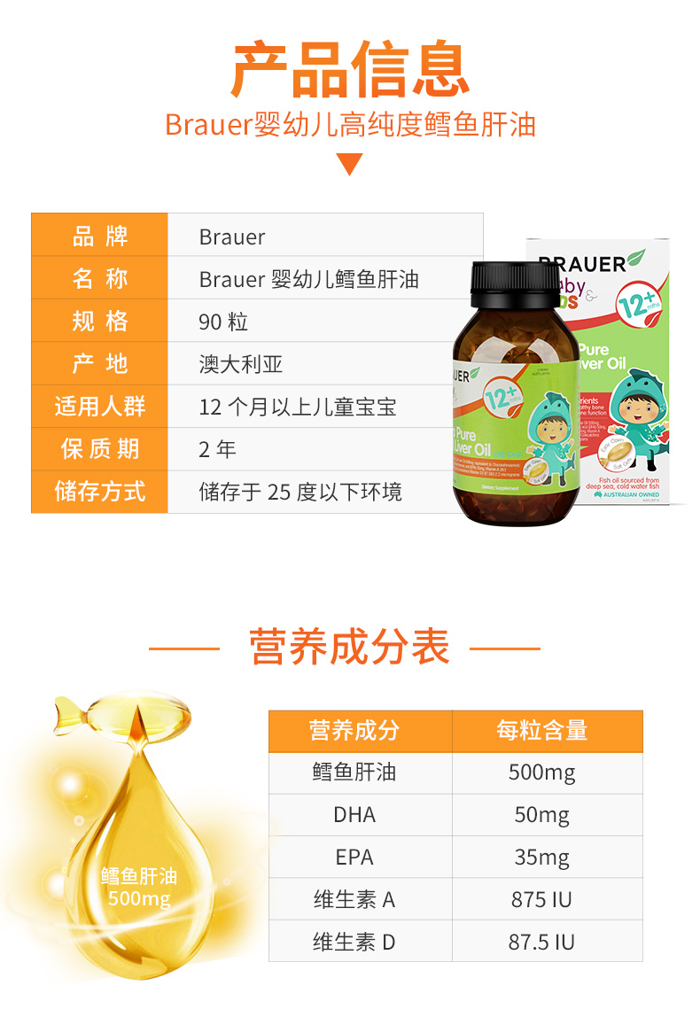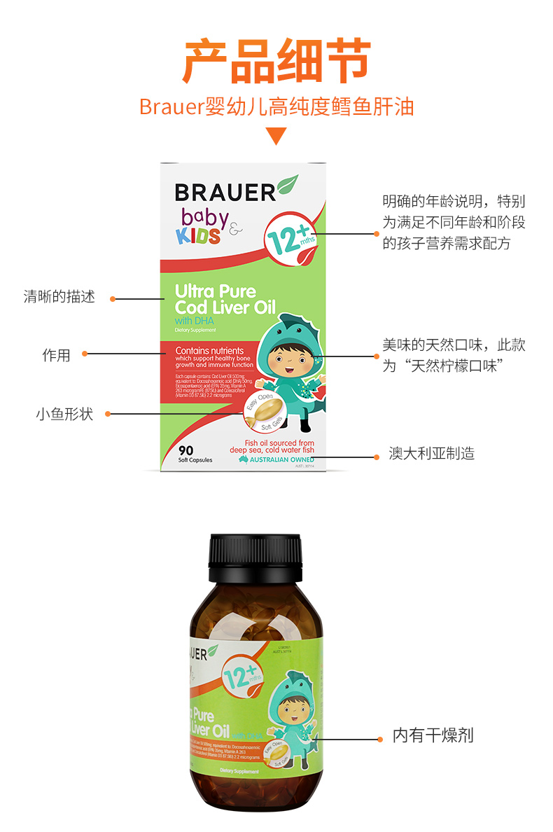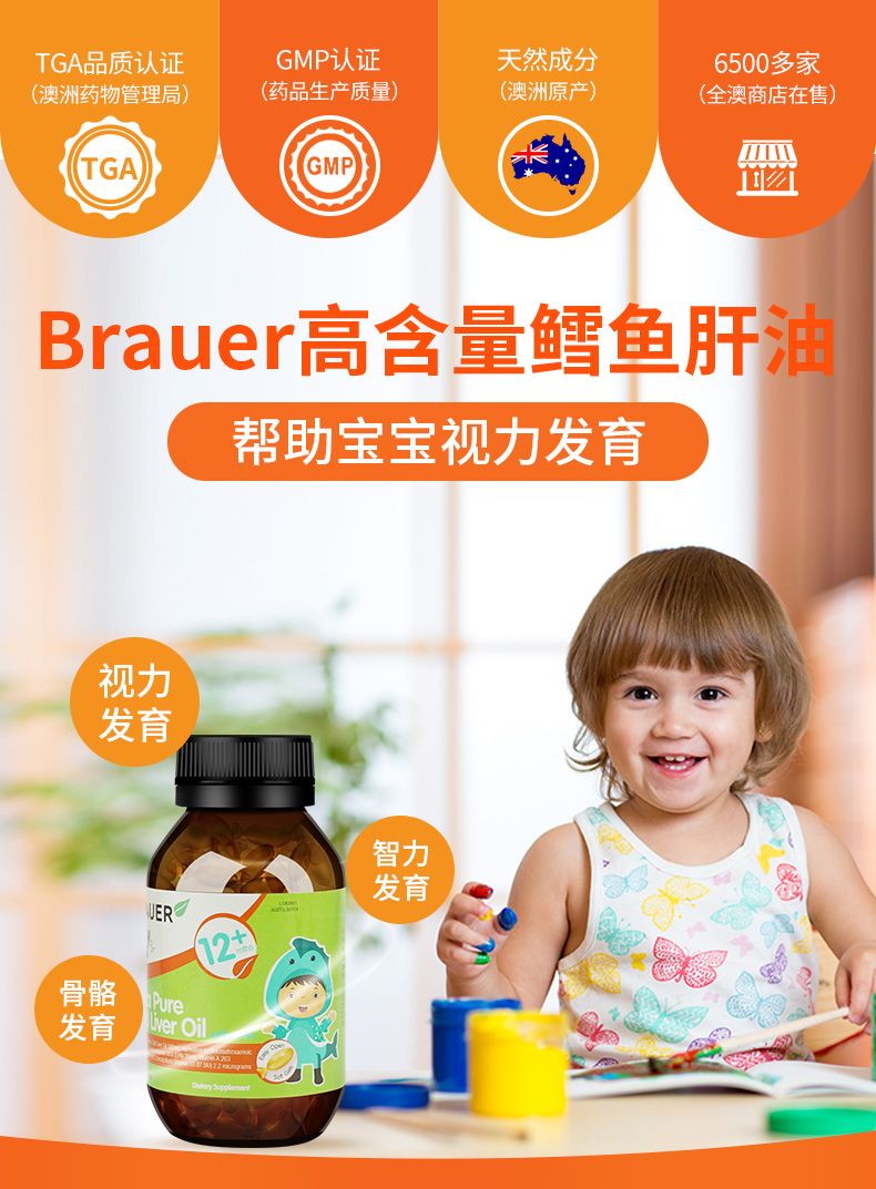 Brauer澳洲鱼肝油儿童宝宝婴幼儿dha补脑记忆力护眼婴儿鱼油增强免疫力,身体更强壮,妈妈很放心。