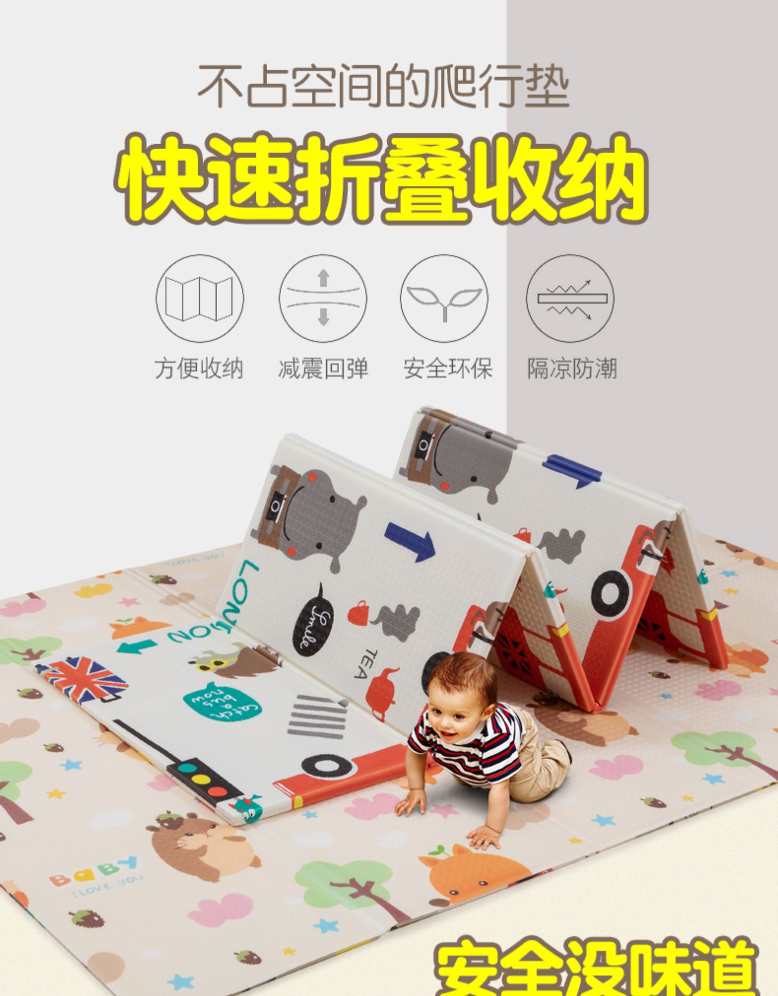儿童爬行垫XPE可折叠小孩宝宝家用客厅泡沫地垫子加厚婴儿爬爬垫