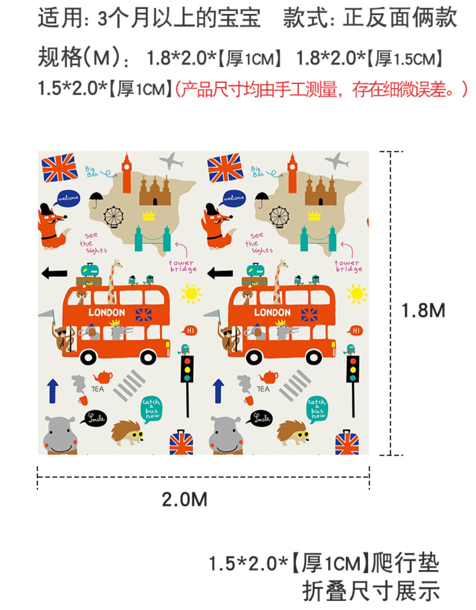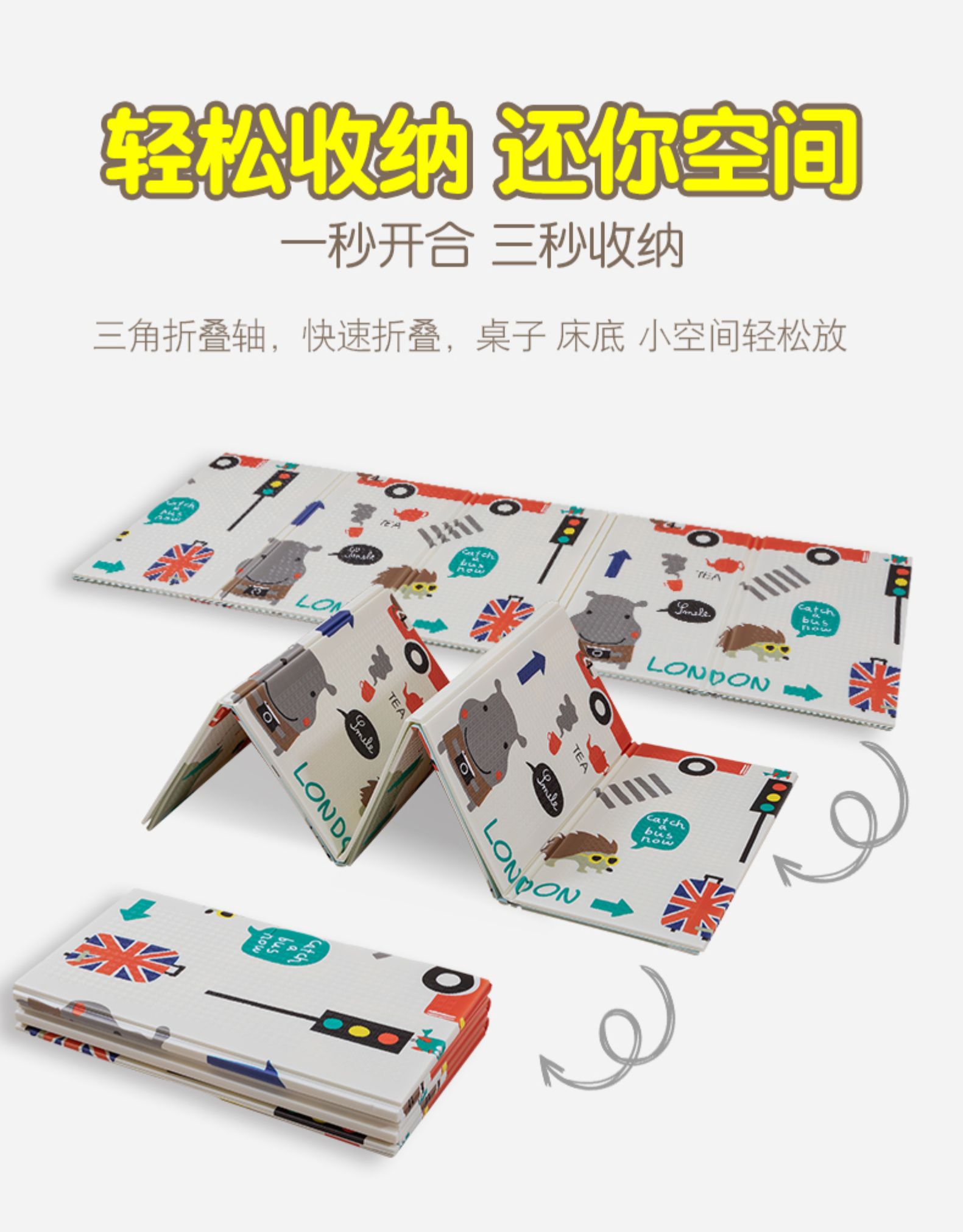 【新款冲量】【1.2m*1.8m加厚大尺寸】快速折叠收纳,加厚减震回弹不怕摔,安全环保无异味,防潮防水匠心设计,脚踩不打滑,防冷隔热,双面图案+早教方格,让宝宝边玩边学习,四季可用!【赠运费险】