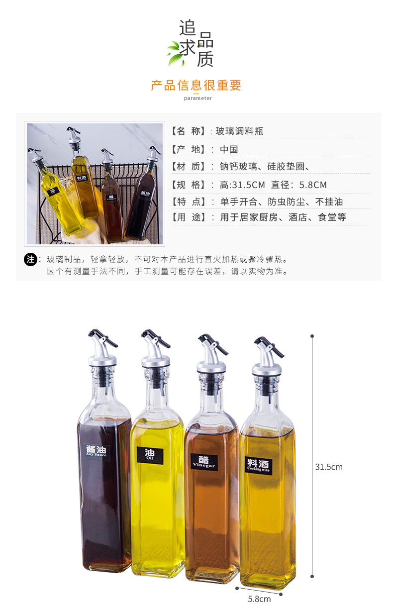 【超低价,500ml大容量那种】超市一个起码10元以上!破损免费补发、无铅玻璃、无毒无害~油、酱、醋、蜂蜜,装啥都行,按压式的油嘴,轻松开盖,不滴油、不挂油,看着就高大上的感觉!