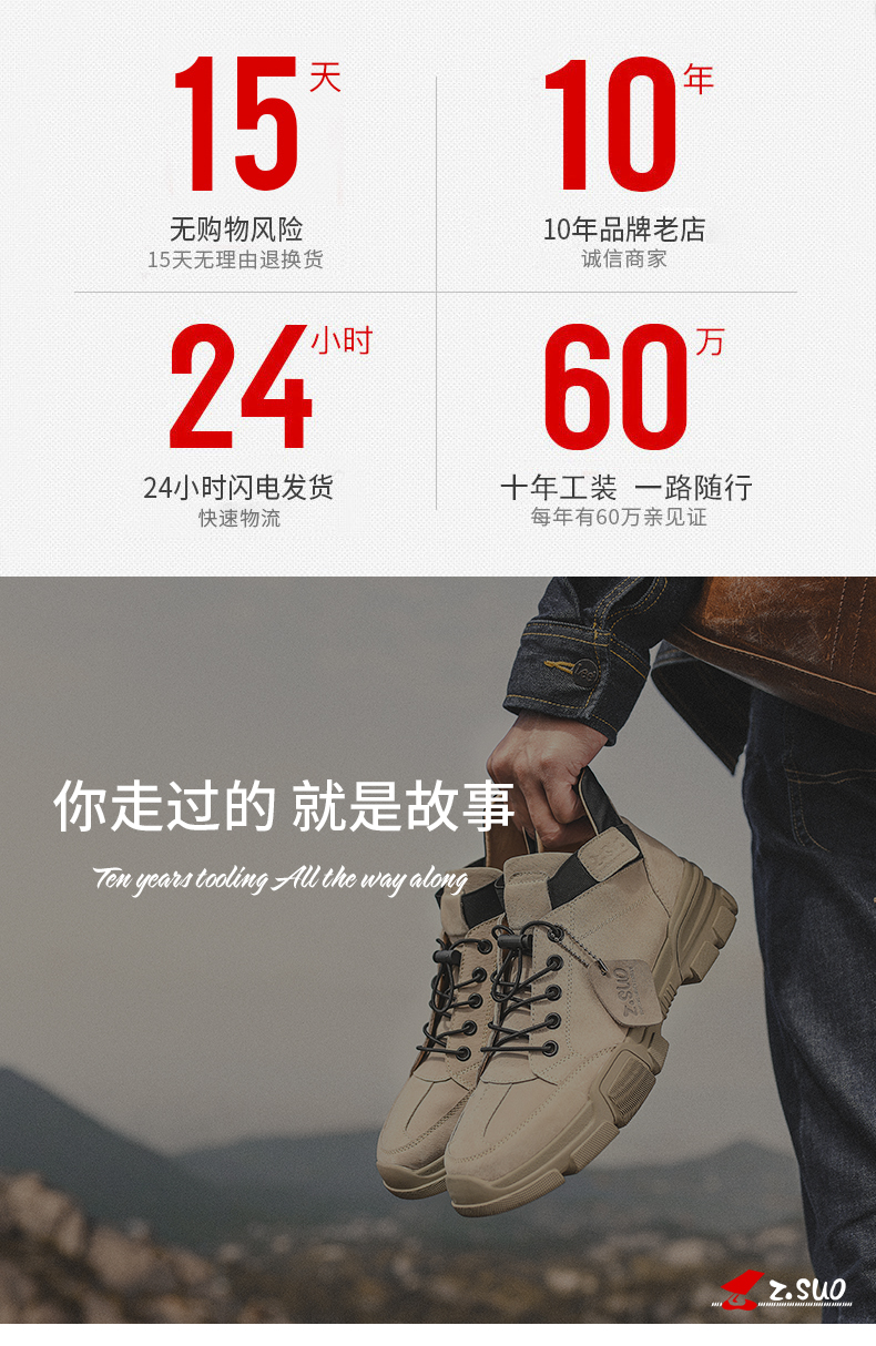 意大利十年老大牌z.suo真皮工装靴!线下实体700+。甄选意大利猪皮面料,巴斯夫超防滑大底,加热绒内里保暖,拉扣鞋带一键系紧。经千万次手工打磨,赫本般的品质!15天无理由退换货,承担来回运费!